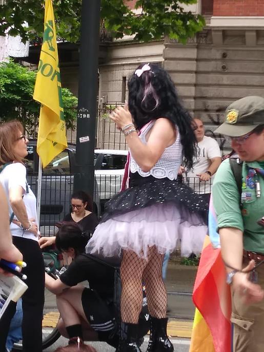 Difficile parlare solo di una parata: quella che ha invaso le strade del centro è stata una comunità in cammino, composta da corpi, storie, identità, esperienze. Un mosaico umano che ha attraversato corso San Martino, via Cernaia, via Pietro Micca, piazza Castello, via Po e piazza Vittorio Veneto – cuore e simbolo dell’arrivo – scandendo un messaggio chiaro: “Senza esclusione di corpi”. Un messaggio che non ha avuto bisogno di spiegazioni complesse, perché è stato vissuto in ogni passo, in ogni cartello, in ogni abbraccio.
