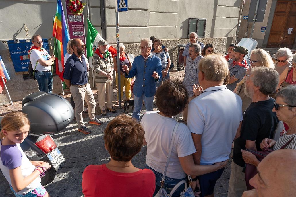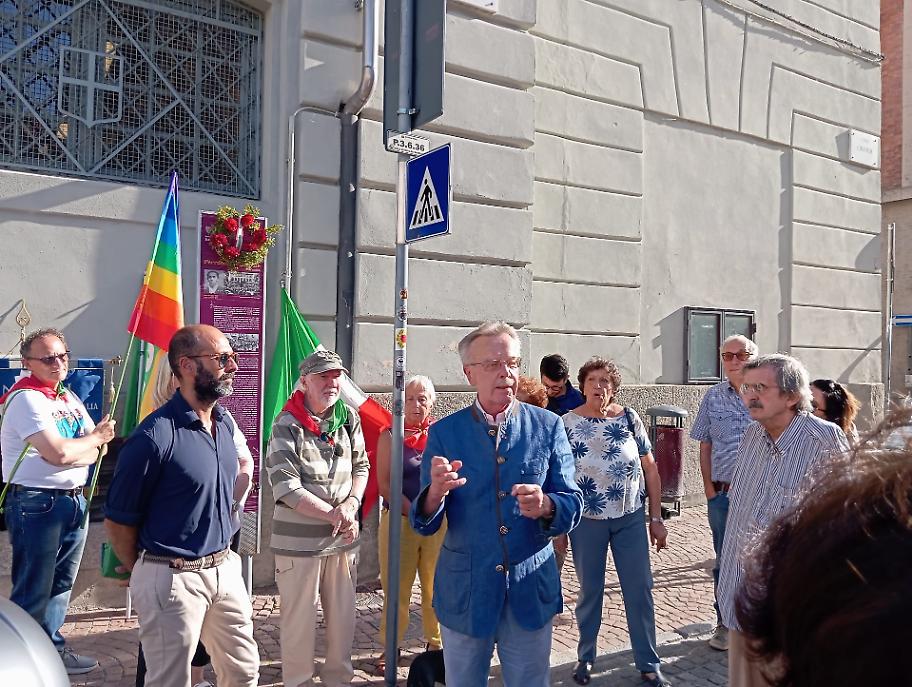 Martedì 29 luglio 2025, come sempre, un nutrito gruppo di cittadini antifascisti ha partecipato alla cerimonia promossa dall’Anpi di Ivrea, alla presenza del sindaco Matteo Chiantore, del presidente del consiglio Luca Spitale, del presidente provinciale dell’Anpi di Biella Gianni Chiorino, di numerose delegazioni territoriali tra cui quelle dell’Alto Canavese e di Biella, del MIR con Pierangelo Monti, e della narratrice Laura Chiono.