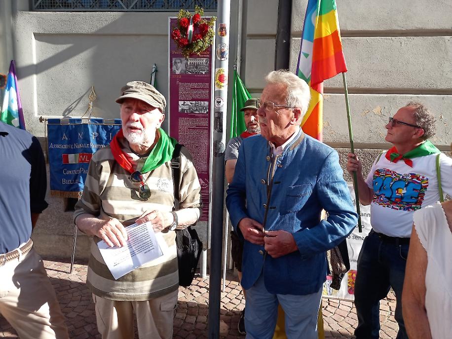 Accanto a tutti, le parole di chi non smette di testimoniare. In prima fila, come sempre, il presidente dell’Anpi di Ivrea Mario Beiletti, che ha aperto la commemorazione con un pensiero commosso a Luciano Guala, storico compagno recentemente scomparso, che tante volte su quella piazza aveva raccontato la storia di Ferruccio.
