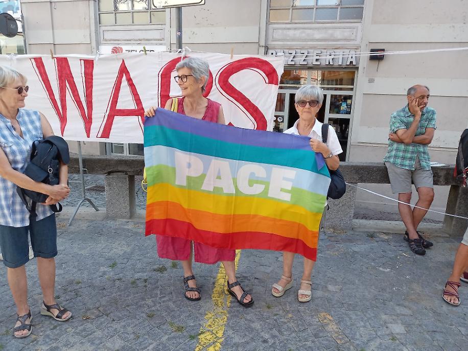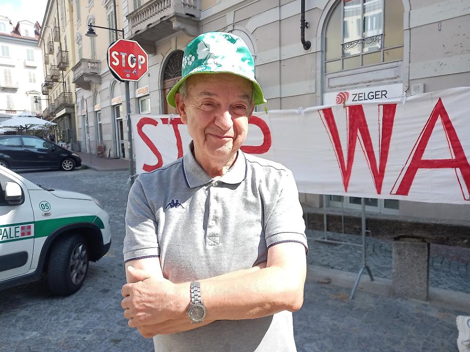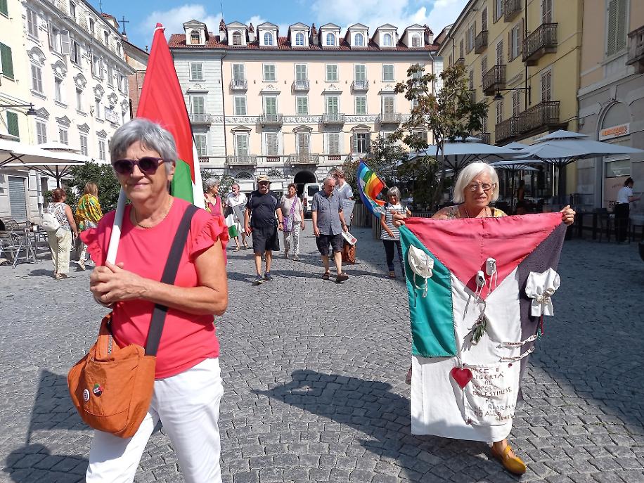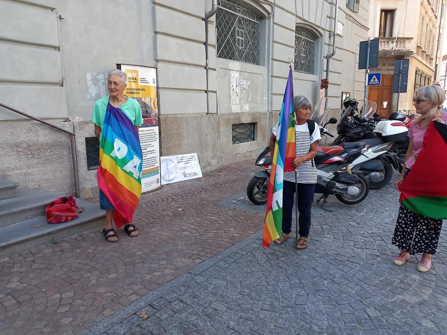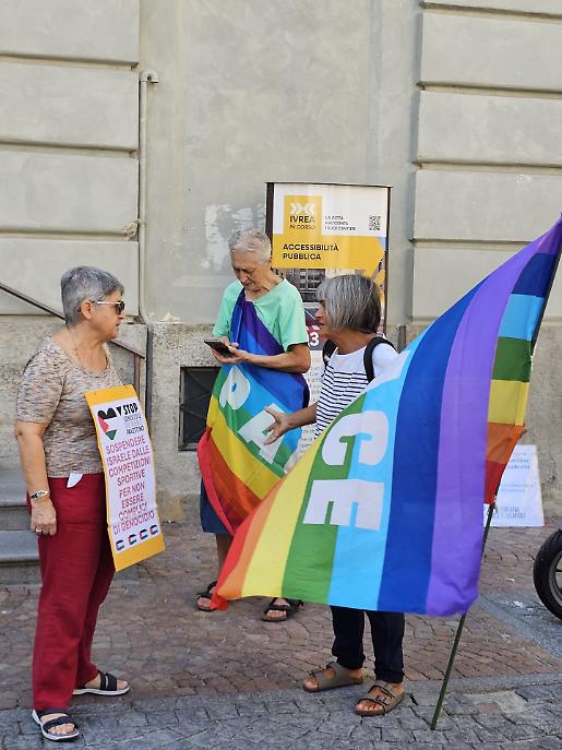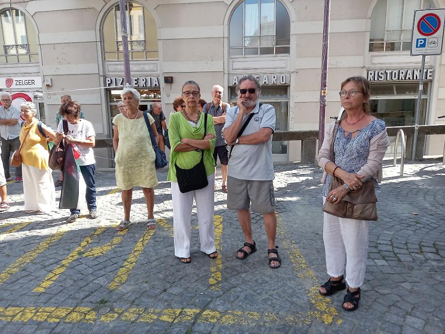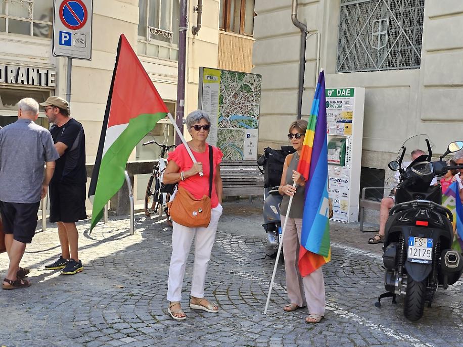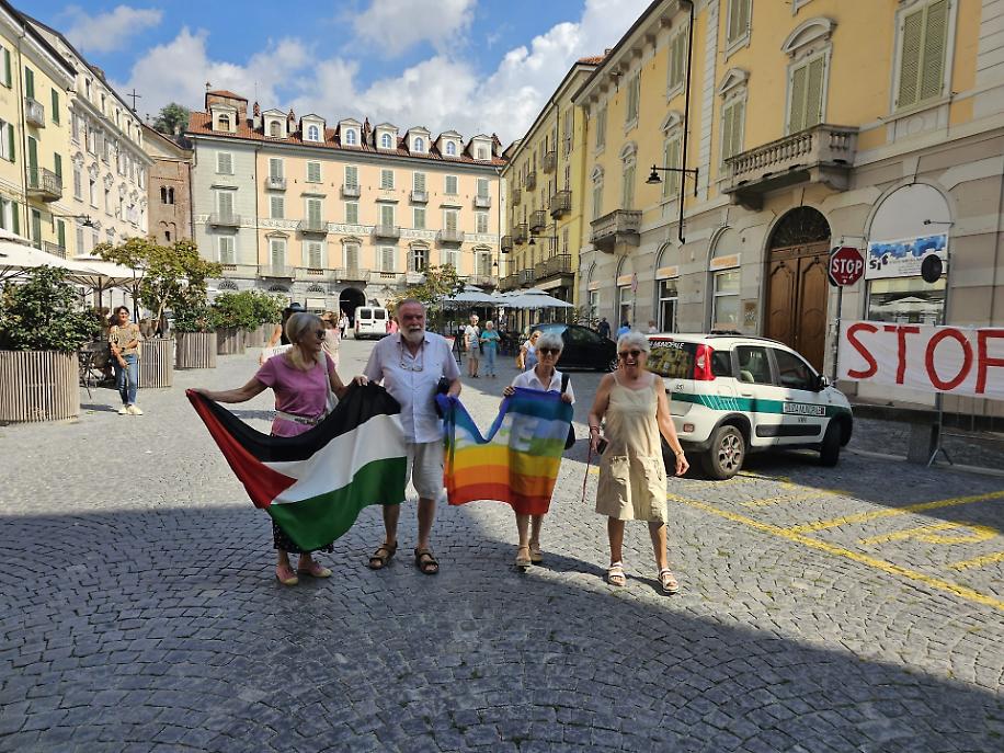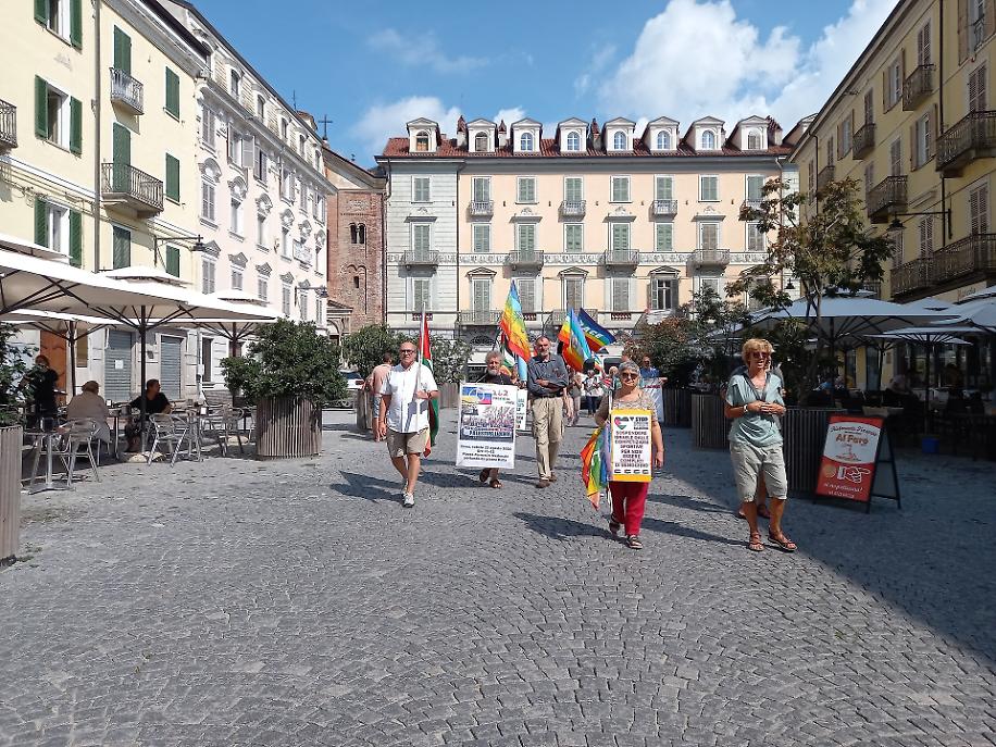 Sabato 23 agosto. A Ivrea passa la Vuelta di Spagna: la città si riempie di applausi, di bandiere, di biciclette che sfrecciano veloci. Ma lungo lo stesso percorso, tra i tifosi che acclamano i corridori, c’è anche un gruppo di cittadini che non guarda alla gloria sportiva, bensì alla tragedia umana che insanguina il mondo. Con cartelli e parole semplici, invocano la fine di tutte le guerre. È così che prende forma il 182° presidio per la pace, quell’appuntamento che da oltre due anni, con ostinata continuità e una resilienza senza paragoni, scandisce ogni sabato eporediese come un battito regolare di coscienza collettiva.