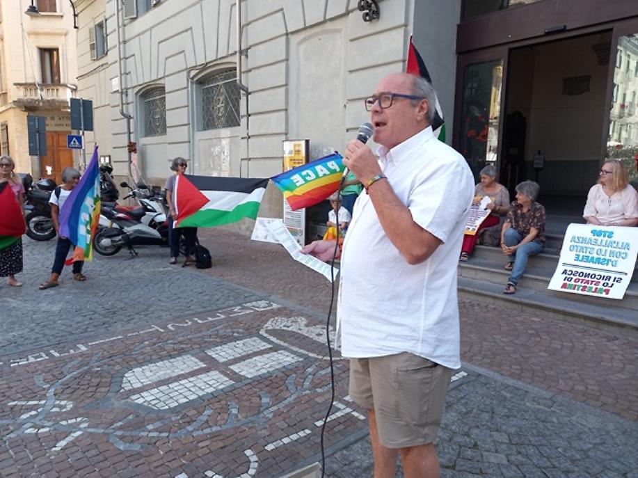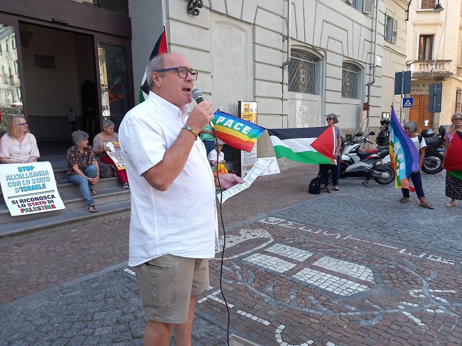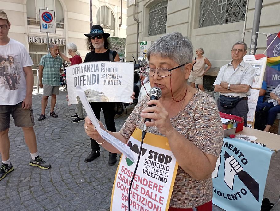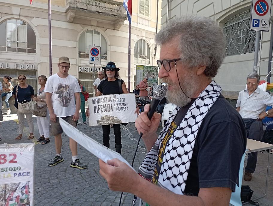 Poi lo sguardo corre alla Palestina, dove la tragedia non ha più aggettivi. Monti parla senza esitazioni di genocidio. «Gaza è ridotta a un cimitero di macerie: il 90% degli edifici è distrutto, la carestia dichiarata dall’Onu minaccia mezzo milione di persone, tra cui 132.000 bambini. Si muore di fame, di sete, di malattie, si muore sotto le tende dei campi profughi bombardati». Eppure il governo israeliano prosegue, sostenuto dagli Stati Uniti e da un Trump che ha avuto l’ardire di definire “eroe di guerra” chi di fatto porta avanti una politica criminale. Persino in Italia non sono mancate critiche: Guido Crosetto e la stessa Giorgia Meloni hanno parlato di “salto di qualità” nell’occupazione, ma alle parole non è seguito alcun atto concreto. Gli accordi militari restano saldi, così come la complicità silenziosa. È in questo contesto che don Renato Sacco invita Crosetto a un confronto pubblico davanti alla base di Cameri sugli F-35. Monti cita anche Giangiacomo Migone, che sul Fatto Quotidiano scrive: «Per fermare Netanyahu a Gaza occorre l’intervento militare dell’Onu. Altrimenti sono chiacchiere». La strada, dice Monti, è una sola: «isolare Israele sul piano internazionale, sospendere i rapporti commerciali e militari, costringerlo a fermarsi». Le parole di Luisa Morgantini risuonano forti: «Salviamo il popolo palestinese dal genocidio, fermiamo i coloni messianici, applichiamo sanzioni, chiudiamo le ambasciate, basta con la vendita di armi».