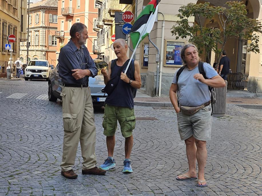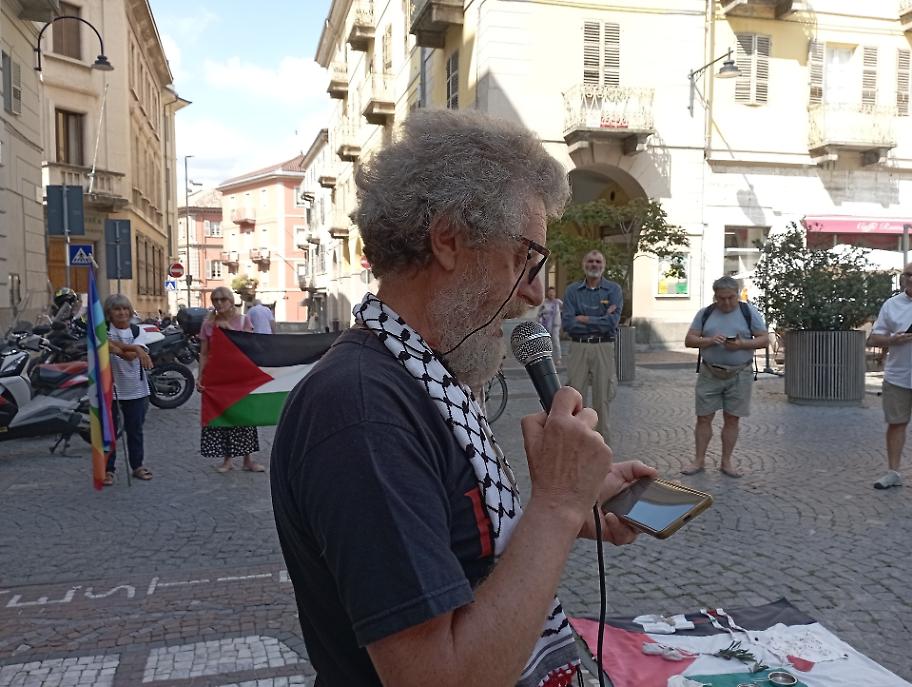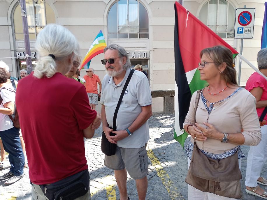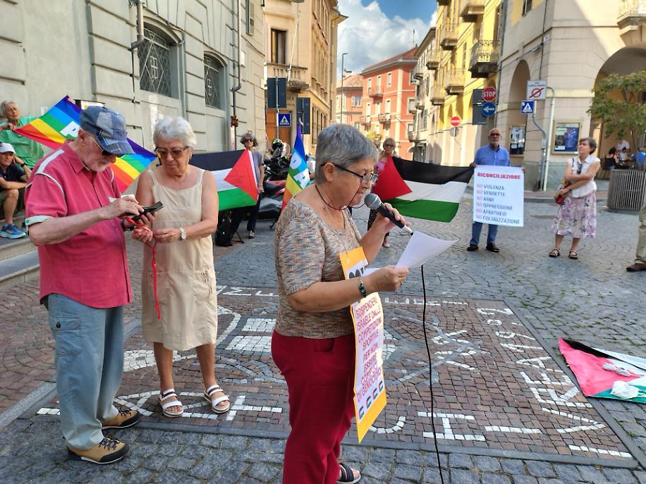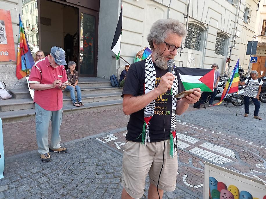 A dare ancora più forza al presidio c'è Cadigia Perini. Legge un’intervista dello scrittore ebreo americano Nathan Thrall, premio Pulitzer 2024. «A Gaza è pulizia etnica», dice Thrall senza ambiguità, denunciando una società israeliana che da decenni ha disumanizzato i palestinesi. «Le grandi manifestazioni interne non cambiano nulla: la maggioranza sostiene o tollera il progetto di espulsione». E ancora: «La convinzione che il problema sia solo Netanyahu è una comoda bugia che serve a non agire». Thrall ricorda che la stessa nascita di Israele fu accompagnata da atti di pulizia etnica e che definire democrazia uno Stato fondato sulla discriminazione dei palestinesi è un inganno.