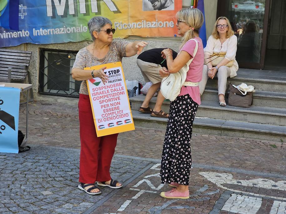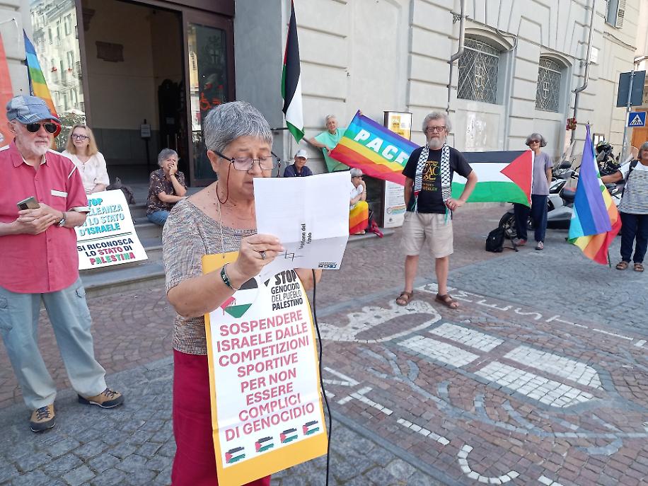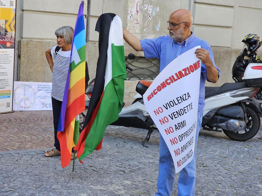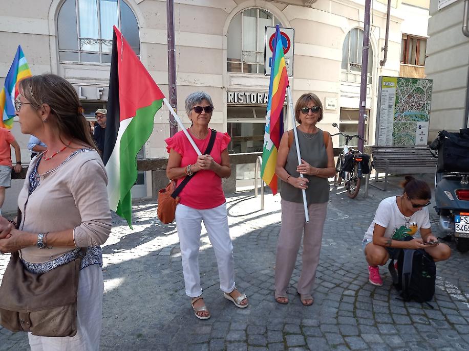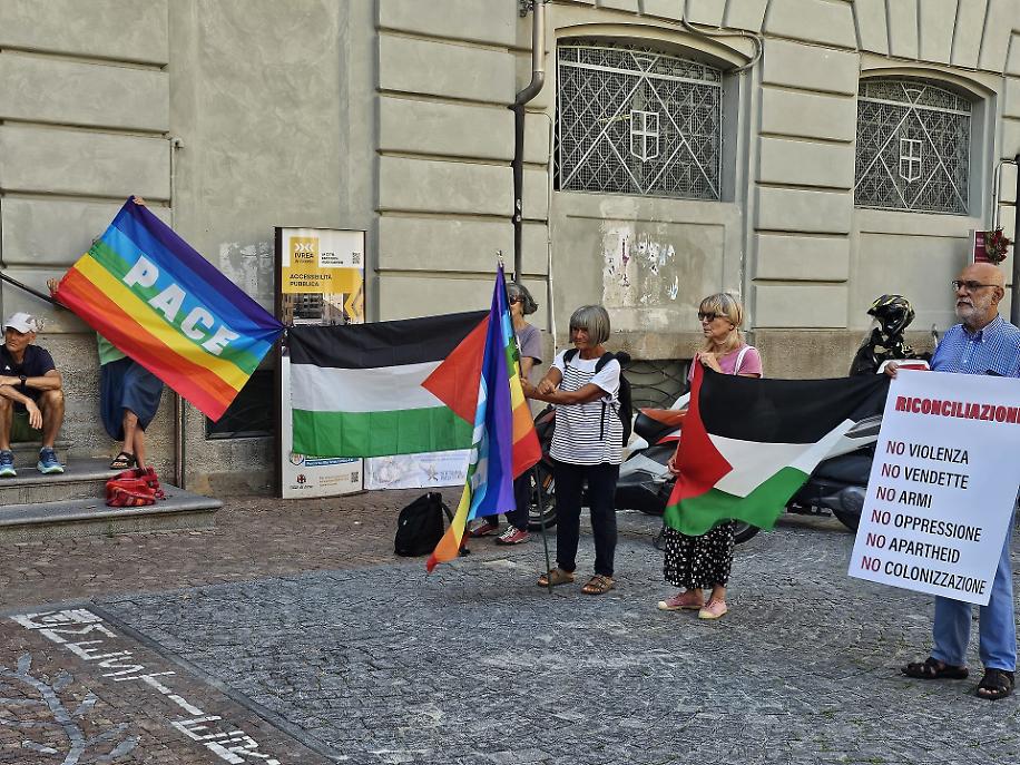 A dare ancora più forza al presidio c'è Cadigia Perini. Legge un’intervista dello scrittore ebreo americano Nathan Thrall, premio Pulitzer 2024. «A Gaza è pulizia etnica», dice Thrall senza ambiguità, denunciando una società israeliana che da decenni ha disumanizzato i palestinesi. «Le grandi manifestazioni interne non cambiano nulla: la maggioranza sostiene o tollera il progetto di espulsione». E ancora: «La convinzione che il problema sia solo Netanyahu è una comoda bugia che serve a non agire». Thrall ricorda che la stessa nascita di Israele fu accompagnata da atti di pulizia etnica e che definire democrazia uno Stato fondato sulla discriminazione dei palestinesi è un inganno.