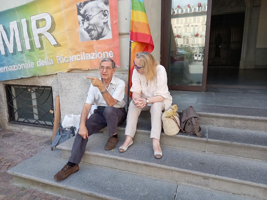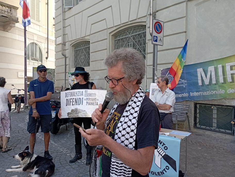 Pierangelo Monti prende la parola con voce grave, quasi rotta dallo sconforto. Non vede spiragli, solo l’avanzare implacabile di una logica di potenza che divora ogni tentativo di mediazione. Parte dall’Ucraina, dove i colloqui di Anchorage e Washington non hanno aperto nessuna prospettiva. Mosca e Kiev restano intrappolate in una spirale di ostinazione: nessuno arretra, entrambi stremati, entrambi convinti di dover vincere sul campo. Due giorni fa, la Russia ha scatenato uno degli attacchi più feroci degli ultimi mesi: 574 droni e 40 missili si sono abbattuti sul Paese, mentre la popolazione civile paga il prezzo più alto. Monti cita allora le parole di Pasquale Pugliese del Movimento Nonviolento, che ricorda un sondaggio Gallup: «Il 69% degli ucraini chiede oggi una fine negoziata della guerra, contro appena il 24% che vuole continuare a combattere». Un’inversione radicale rispetto al 2022, segno che il popolo è allo stremo, che i disertori crescono, mentre i governi restano sordi, prigionieri di un ingranaggio bellico che si autoalimenta. «Le spese militari sono l’unico vero affare dei governi» – dice Monti – «e lo dimostra l’atteggiamento di Trump, che non regala più armi ma le vende, trasformando la guerra in un gigantesco mercato». Basta osservare le borse europee: ogni voce di trattativa fa crollare i titoli delle aziende di armamenti. Ma qui, a Ivrea, la voce è un’altra: «disarmo, dialogo, nonviolenza».