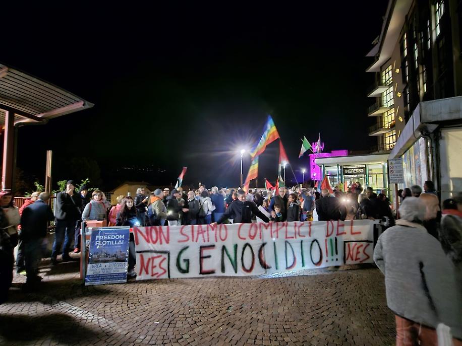 A Ivrea si manifesta per la Palestina. E non è un caso isolato: lo stesso accade a Torino, Milano, Bologna, Firenze, Roma, Napoli e in decine di altre città italiane. Da Nord a Sud, la mobilitazione nazionale “Luci sulla Palestina”, promossa dalla rete #DigiunoGaza, mette insieme oltre trentamila tra medici, infermieri e operatori sanitari. E dentro questa mobilitazione prende forza anche un appoggio incondizionato alla Flotilla, bloccata in acque internazionali dai militari israeliani. Un gesto di repressione che molti considerano inaccettabile, l’ennesimo segno di un assedio che non risparmia nessuno.