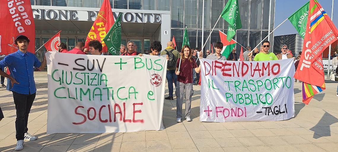 Davanti al grattacielo della Regione Piemonte, a Torino, stamattina c’erano più di mille persone. Mille cittadini arrabbiati, stanchi, esasperati, che non ne possono più di un servizio che cade a pezzi. Li ha portati in piazza la Cgil, insieme a Legambiente, Fridays For Future, Federconsumatori, Arci, Libera, Udu e Comis. Un fronte comune che unisce studenti, ambientalisti, docenti e lavoratori sotto un unico grido: vogliamo un trasporto pubblico vero, non un’illusione finanziata a colpi di slogan.