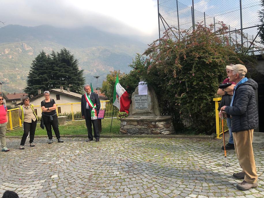 Alla croce, Elena Mori ha letto un brano da “La Resistenza in Canavese” di Mario Beiletti, dedicato proprio alla Battaglia di Quincinetto. Poi Mattea Buat Albiana ha dato voce alle memorie del partigiano Riccardo Ravera Chion, nome di battaglia “Terribile”.