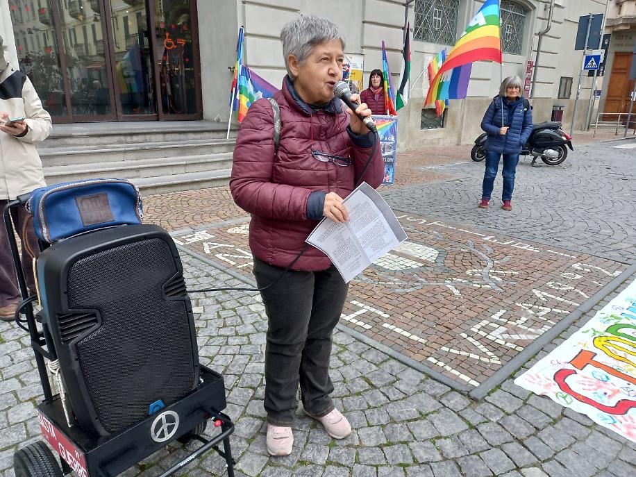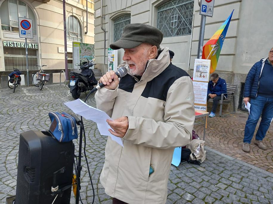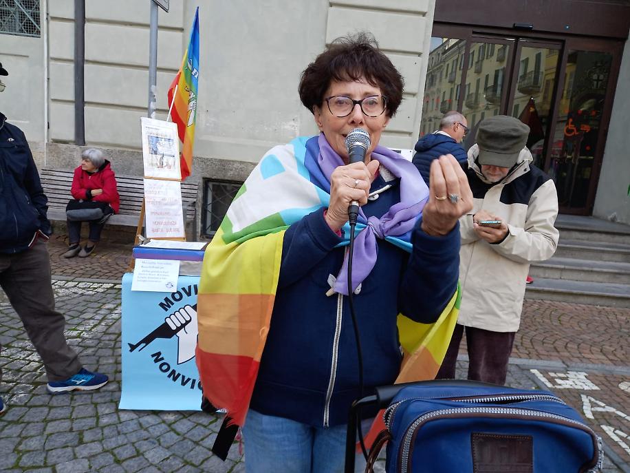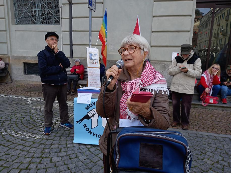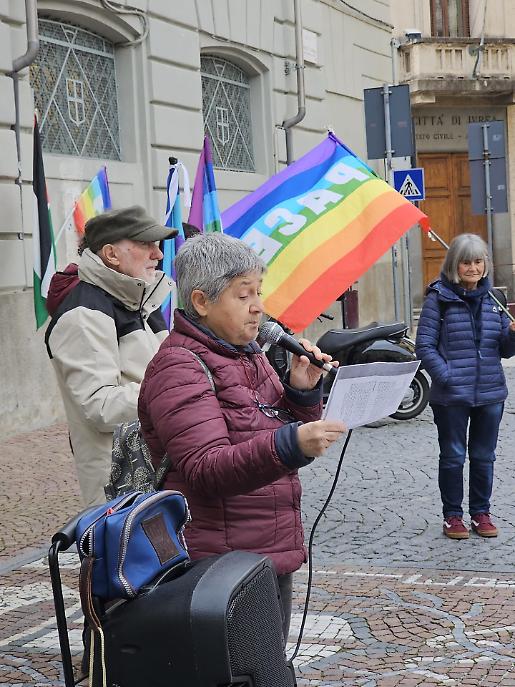 Quante sono oggi le guerre nel mondo? Se lo è chiesta Cadigia Perini, sabato mattina in piazza di Città a Ivrea, aprendo il 192° Presidio per la Pace.