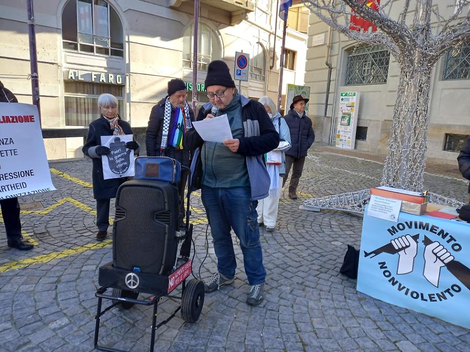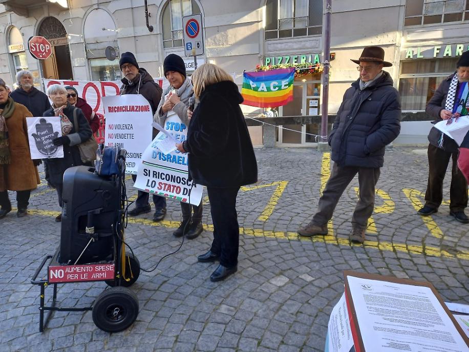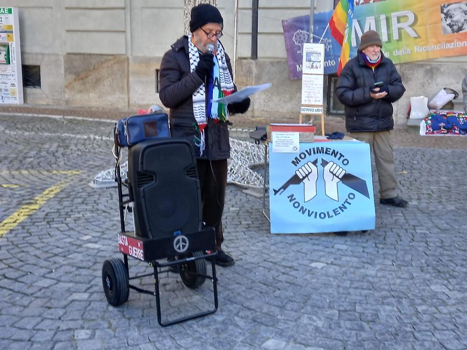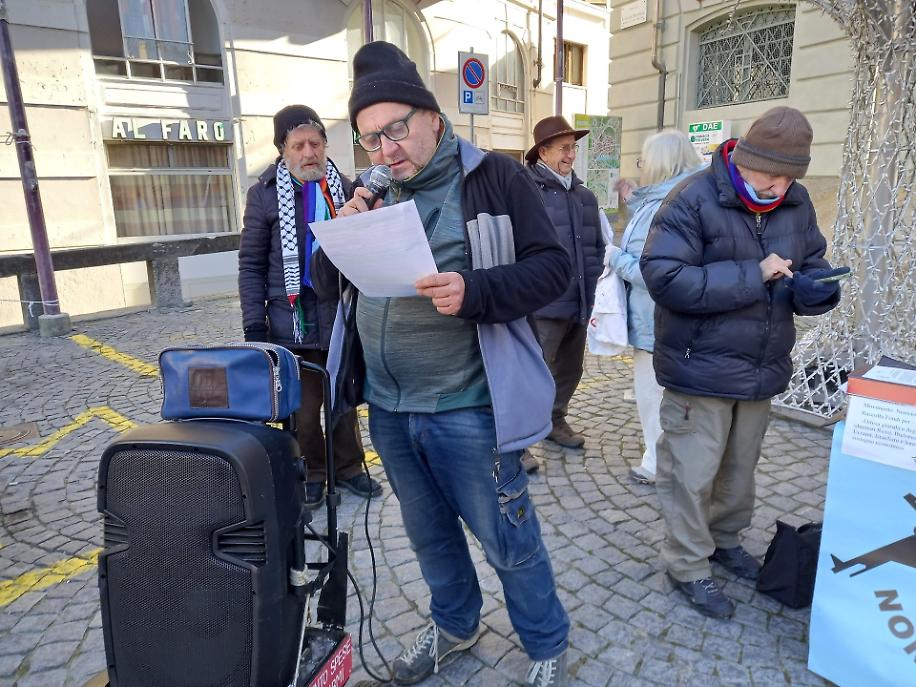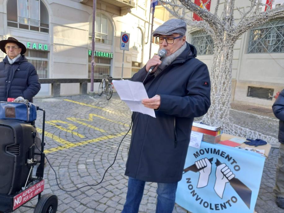 Ad aprire il presidio è stato Pierangelo Monti, che è andato subito al sodo, senza giri di parole. «Il 2025 si è chiuso male e il 2026 è iniziato peggio – ha detto – perché per la pace nei Paesi in guerra non si è aperto nessuno spiraglio. Anzi, il conflitto globale ha mostrato un’ulteriore escalation».