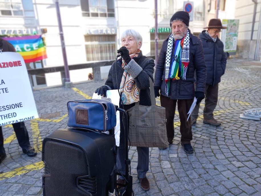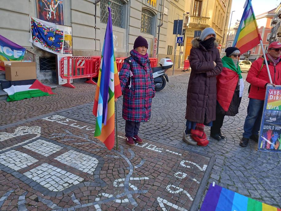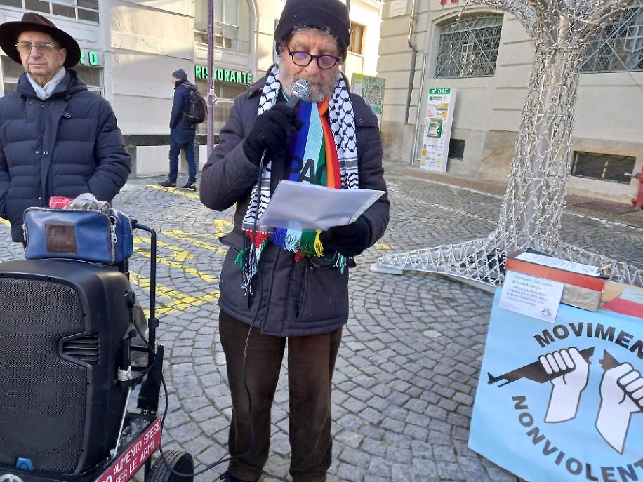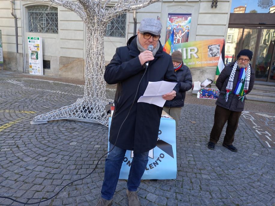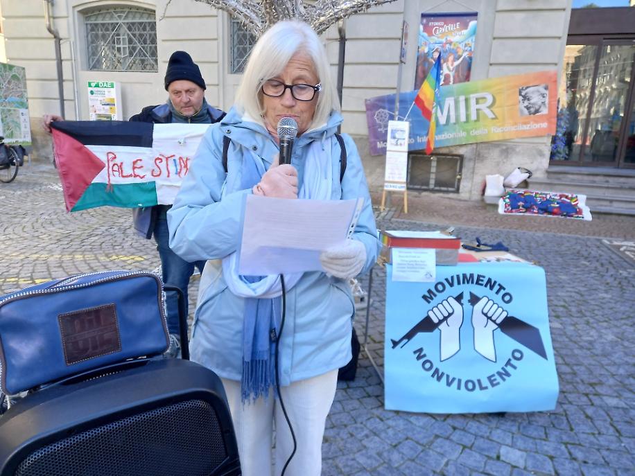 Ad aprire il presidio è stato Pierangelo Monti, che è andato subito al sodo, senza giri di parole. «Il 2025 si è chiuso male e il 2026 è iniziato peggio – ha detto – perché per la pace nei Paesi in guerra non si è aperto nessuno spiraglio. Anzi, il conflitto globale ha mostrato un’ulteriore escalation».
