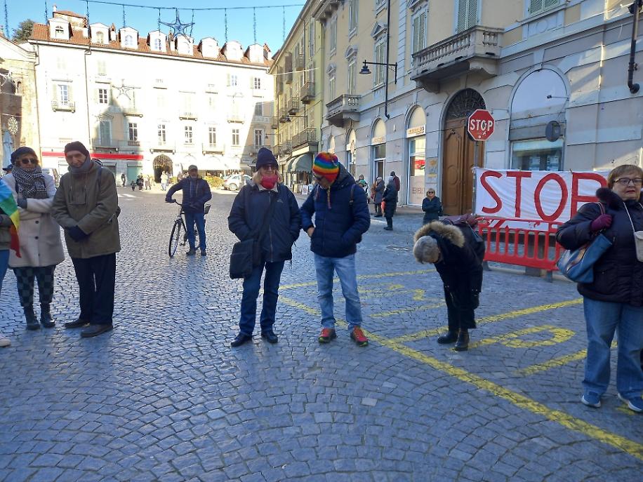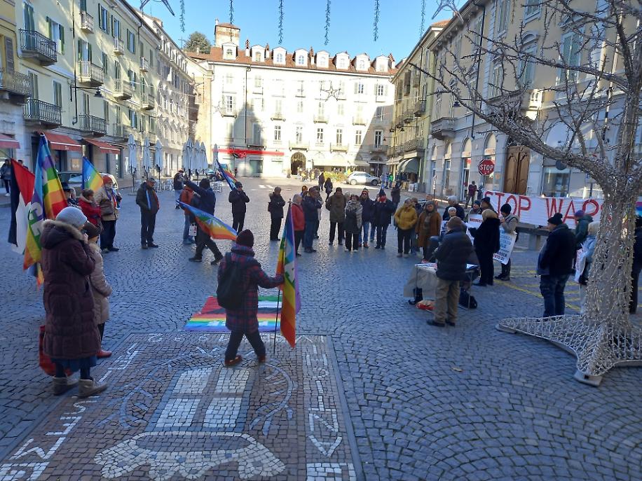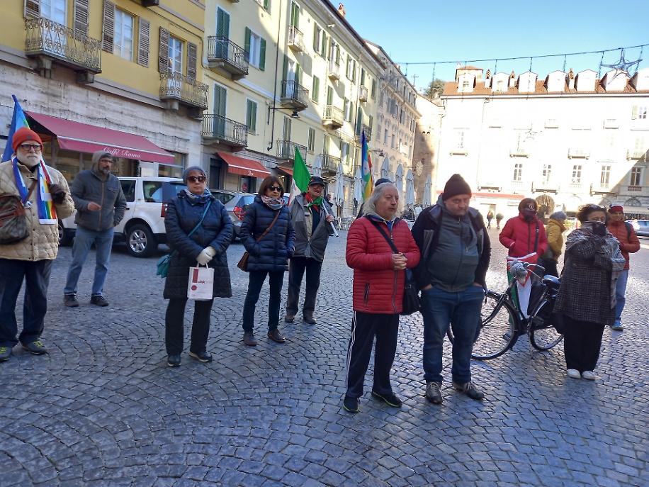 Faceva freddo, sabato mattina, a Ivrea. La temperatura era appena sopra lo zero, quel freddo secco che di solito svuota le piazze e scoraggia anche i più motivati. E invece no. Anche questa volta no. Al 201° Presidio per la Pace, sabato scorso, c’erano. Erano una quarantina. Non una folla oceanica, ma abbastanza da dimostrare che la parola pace, nonostante tutto, non è ancora stata archiviata. Persone diverse, unite da una scelta semplice e radicale: esserci, anche quando il mondo sembra andare esattamente dalla parte opposta.