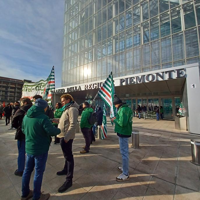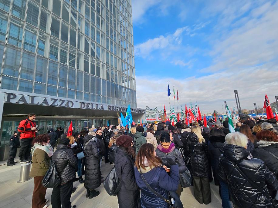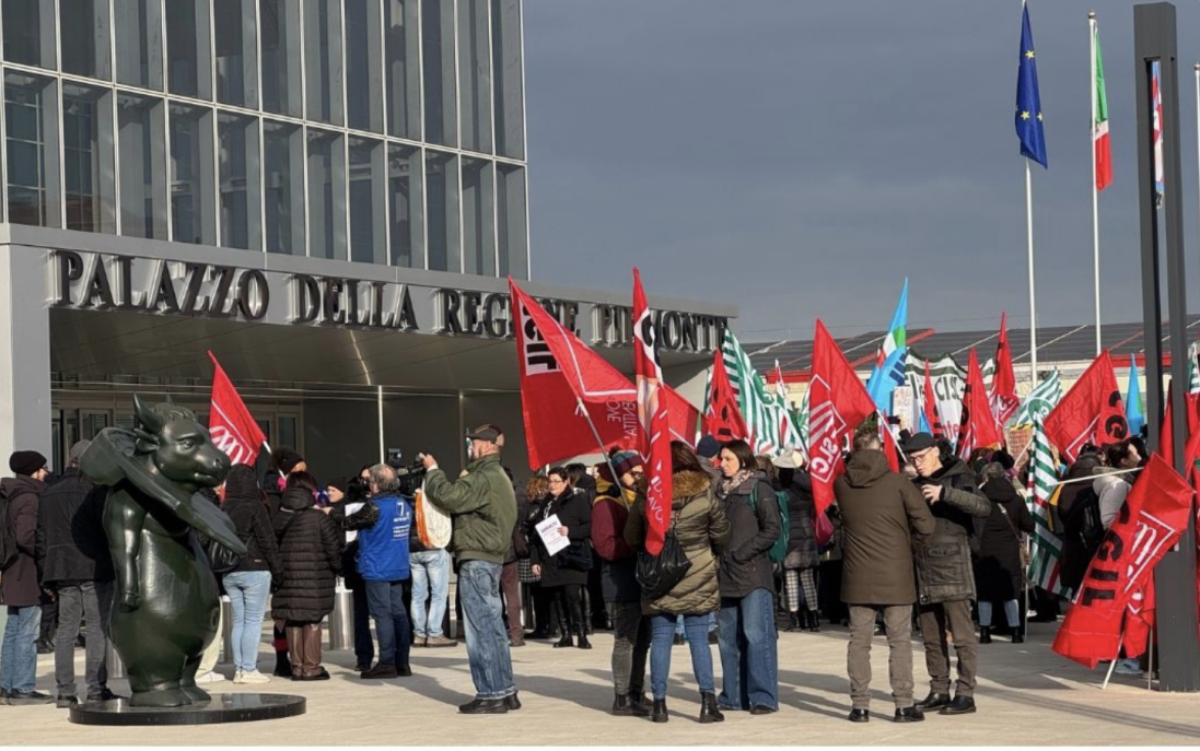 Una riorganizzazione che pesa come un macigno soprattutto su donne, lavoratrici part-time e personale in somministrazione. Profili per i quali il pendolarismo quotidiano verso Torino non è una soluzione praticabile, ma una condanna. Stipendi bassi, orari spezzati, carichi familiari importanti: elementi che rendono il trasferimento non una scelta, ma un’uscita obbligata dal mercato del lavoro. Solo a Ivrea il “trasloco forzato” riguarda circa 700 persone. Numeri che spiegano perché sotto le finestre della Regione non ci fossero solo bandiere sindacali, ma anche rabbia composta, freddo sopportato e una dignità che non ha alcuna intenzione di farsi archiviare come una voce di bilancio.