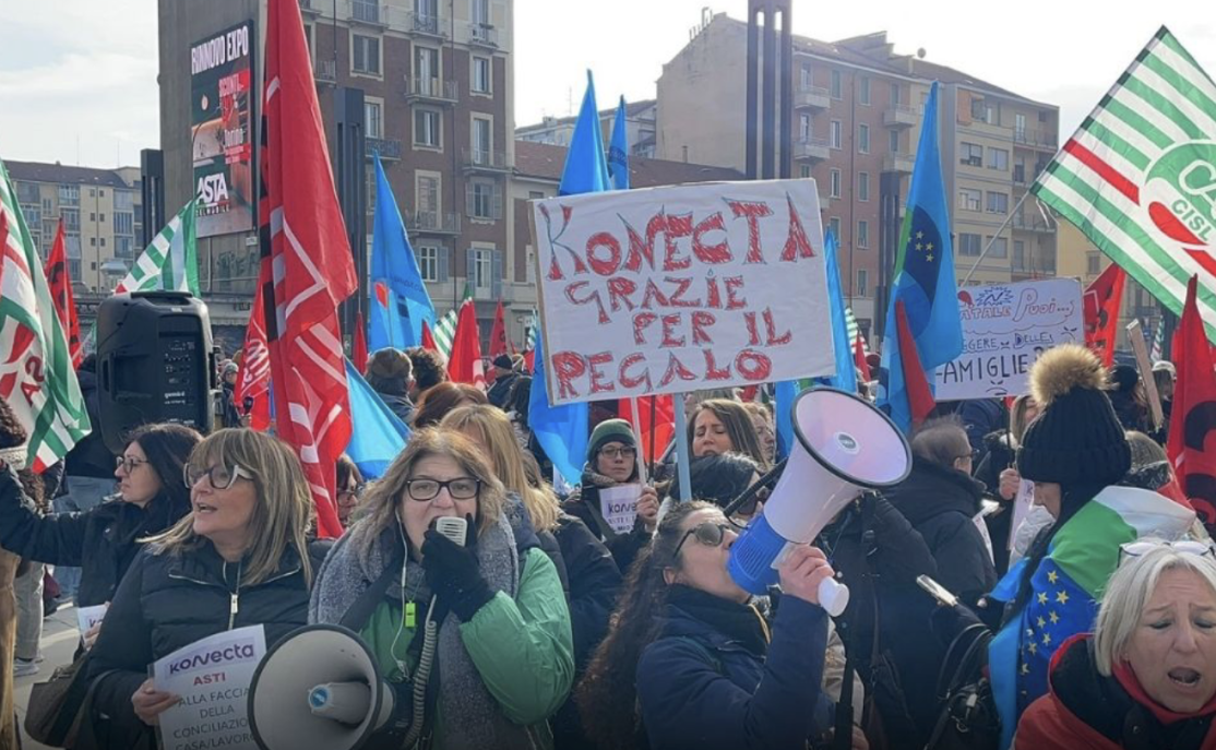 Il nodo della vertenza è noto, ma per questo non meno grave. Konecta, multinazionale spagnola del customer care, ha annunciato la chiusura delle sedi di Ivrea e Asti entro giugno 2026, con l’accorpamento di oltre 1.100 dipendenti sul polo di Torino: circa 700 da Ivrea e più di 400 da Asti. Una scelta che, nei fatti, mette centinaia di persone di fronte a un bivio impossibile: trasferirsi ogni giorno a Torino o perdere il lavoro. Con circa 150 esuberi già messi nero su bianco e molti altri che rischiano di materializzarsi sotto forma di dimissioni “indotte”.