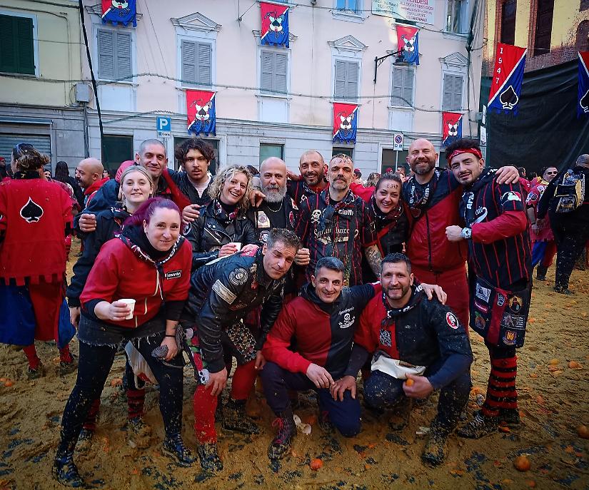 La squadra è stata fondata da un gruppo di giovani giocatori dell’Ivrea calcio, segna la nascita della Battaglia delle arance in forma organizzata. Divisa rossa e blu con l’asso di picche come distintivo e foulard nero.