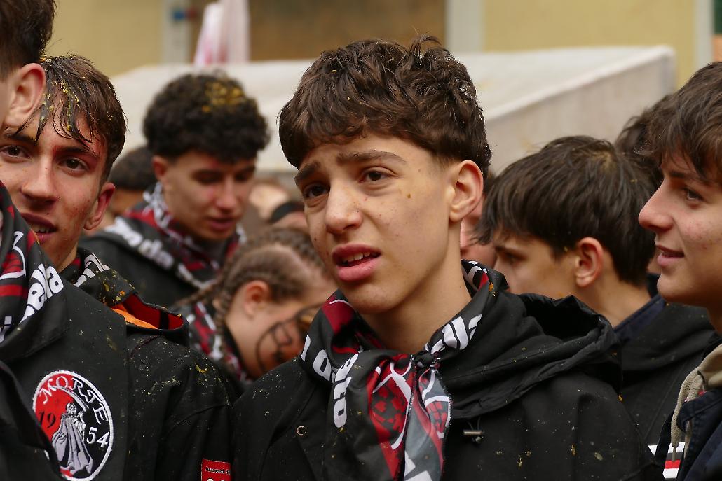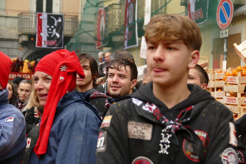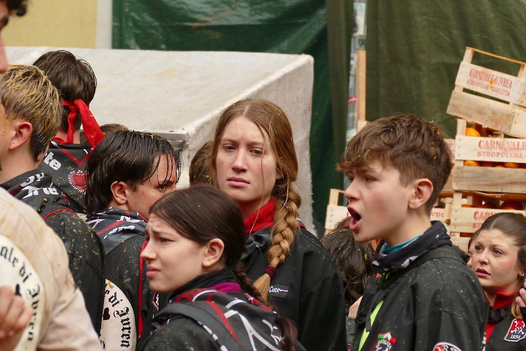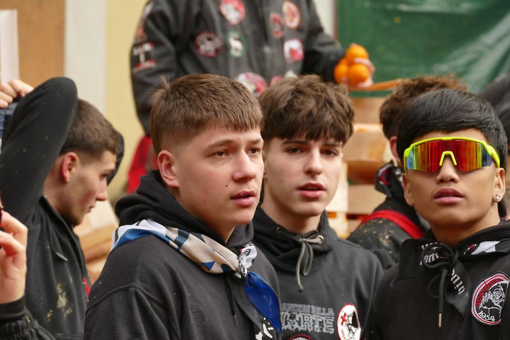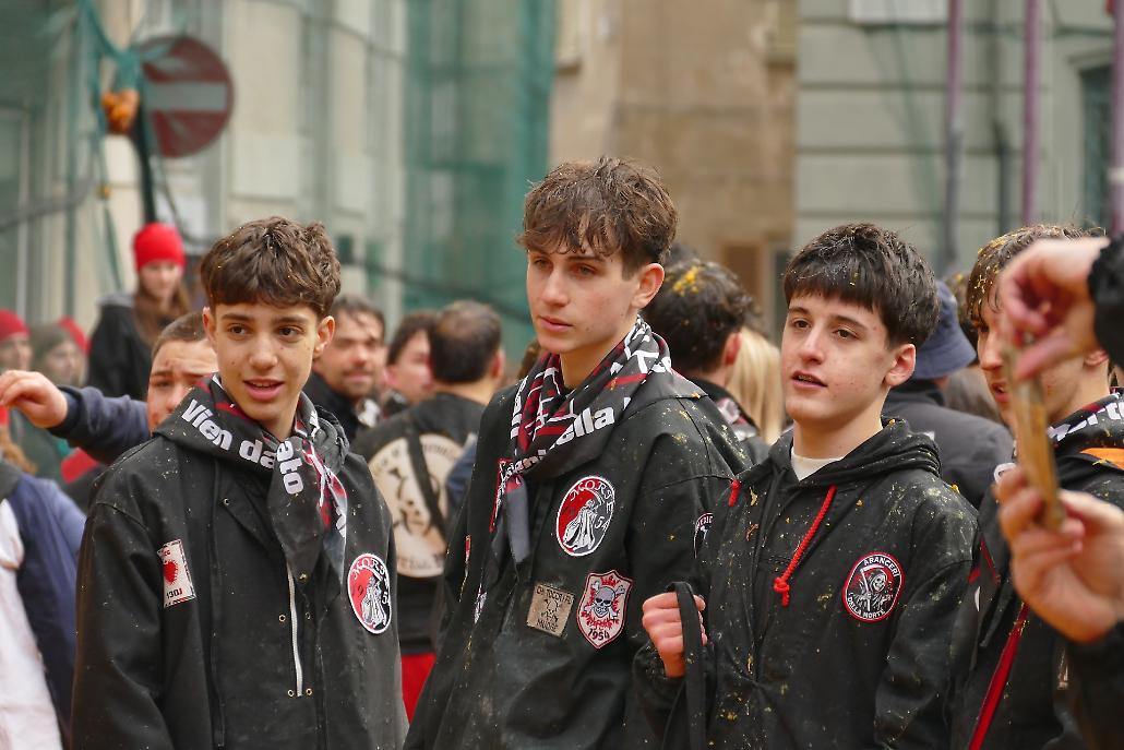 L’avvento delle squadre degli aranceri modifica profondamente la struttura originaria del fenomeno festivo eporediese: la battaglia delle arance diviene in tal modo una realtà prevalentemente legata ai giovani.