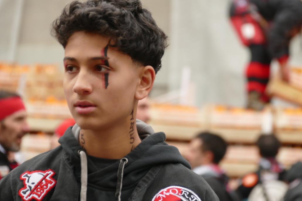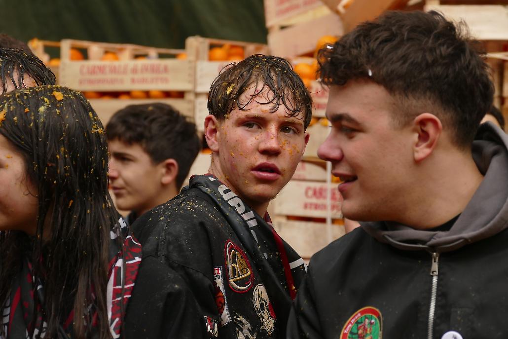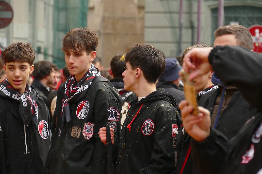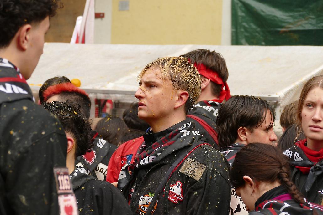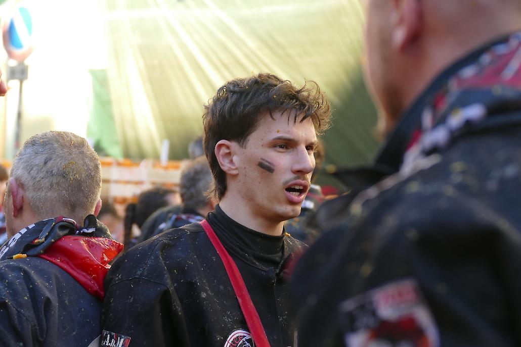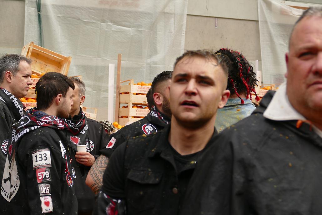 L’avvento delle squadre degli aranceri modifica profondamente la struttura originaria del fenomeno festivo eporediese: la battaglia delle arance diviene in tal modo una realtà prevalentemente legata ai giovani.