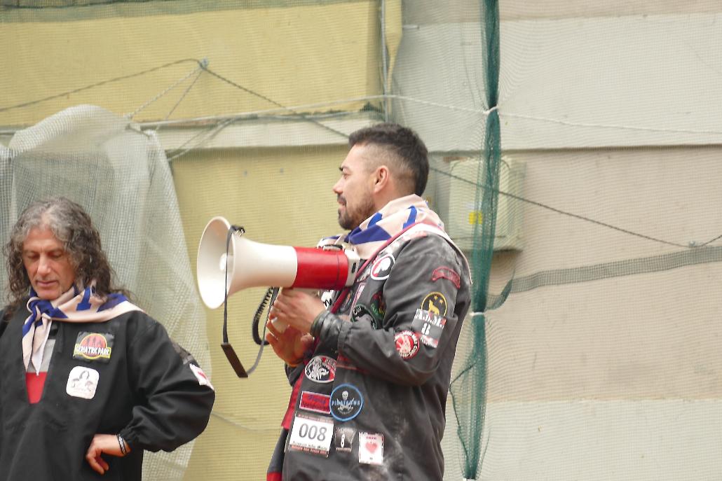 Hanno casacca e pantaloni rossi con bande gialle e foulard giallo. Il loro stemma è un diavolo con la forca.