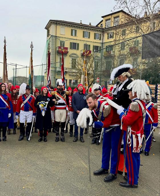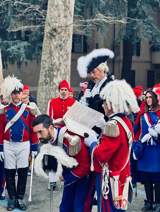 La mattinata è proseguita in Piazza di Città dove alle 12.30 si è tenuta la Cerimonia della consegna dell’Albero della Libertà. Un momento carico di richiami storici: l’albero, memoria delle rivoluzioni e delle aspirazioni di emancipazione, viene affidato alla comunità come segno tangibile dei valori che il Carnevale rievoca. Non è un gesto ornamentale, ma un atto che richiama la leggenda della Mugnaia e la ribellione contro la tirannia, fondamento stesso dello Storico Carnevale.
