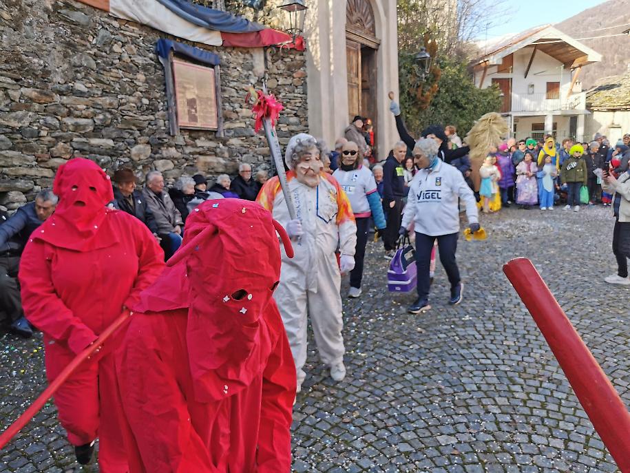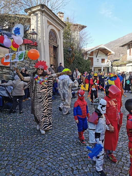 Accanto ai personaggi storici non sono mancate le trovate ironiche e i richiami all’attualità. Un folto gruppo di piccoli “Tic Tac”, ispirati all’iconico astuccio della nota caramella, il tedoforo delle Olimpiadi Milano-Cortina, i bocciatori con la cheerleader, il circo di Mezzenile, il boscaiolo, i supereroi e tanti bimbi hanno rinnovato insieme questo carnevale che è al tempo stesso memoria e presente.