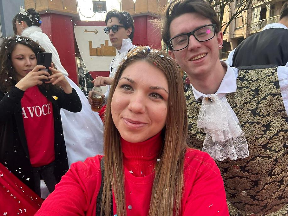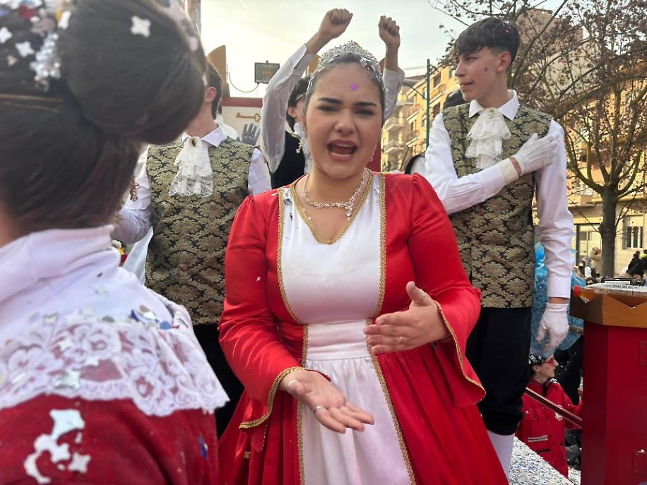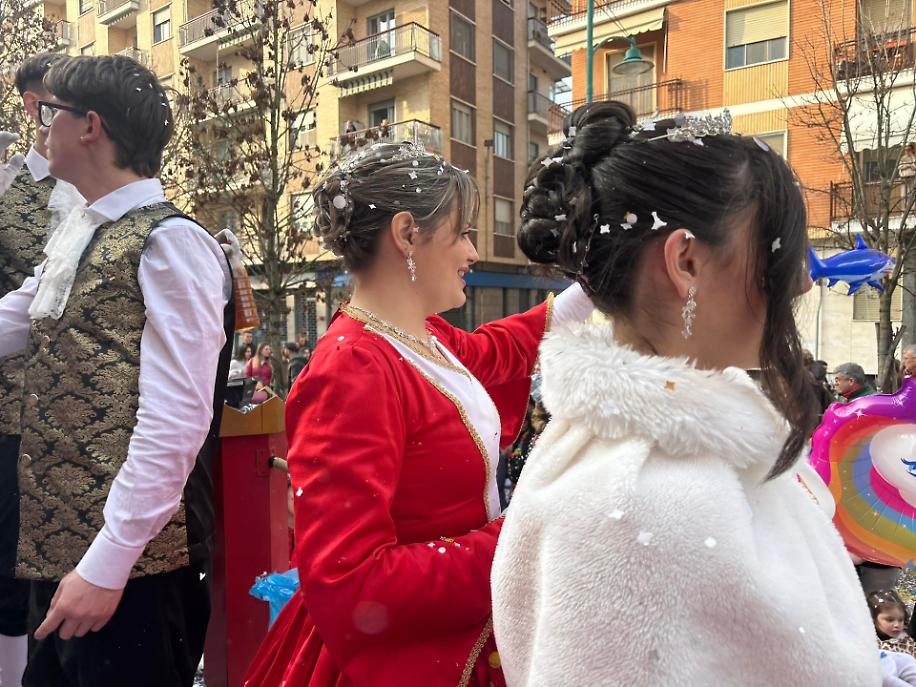 Quest’anno ho avuto l’opportunità di vivere un’esperienza diversa e privilegiata: salire su un carro, “La Corte di Castelrosso”, e osservare la sfilata da una prospettiva unica. Guardare la folla dall’alto cambia completamente la percezione della festa. Si vede l’onda di persone muoversi insieme, si percepisce l’energia che attraversa la piazza, si osservano i volti dei bambini in attesa dei coriandoli e gli applausi spontanei che accompagnano il passaggio dei carri.