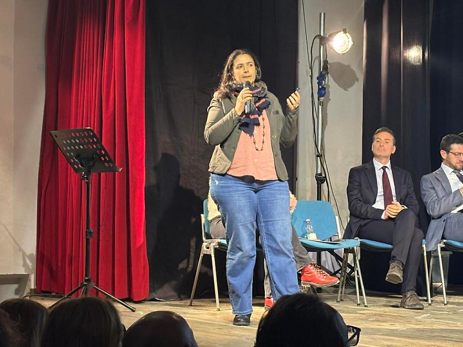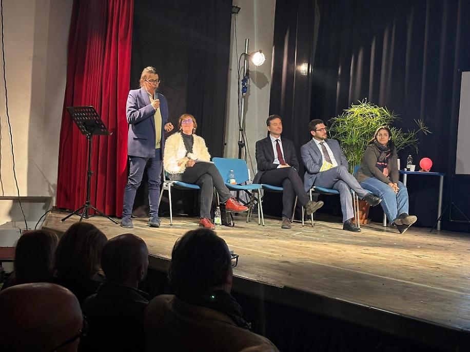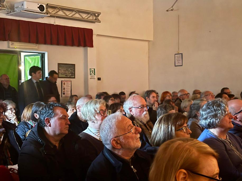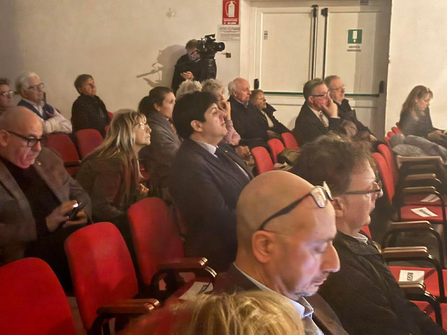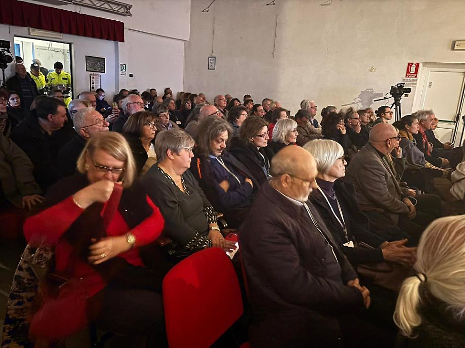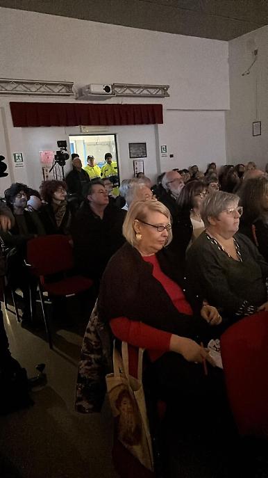 Con il freddo della sera e il teatro pieno, molti hanno scelto di restare fuori pur di seguire gli interventi. Un’immagine concreta di partecipazione, che dice più di tante dichiarazioni.