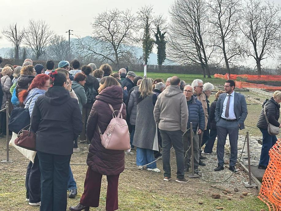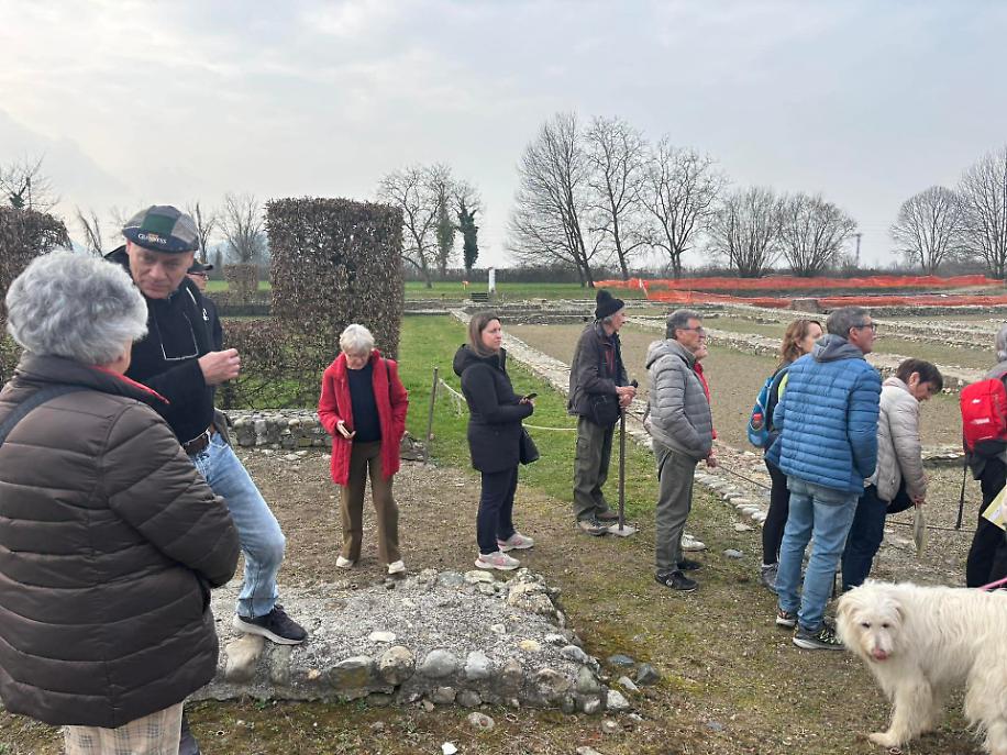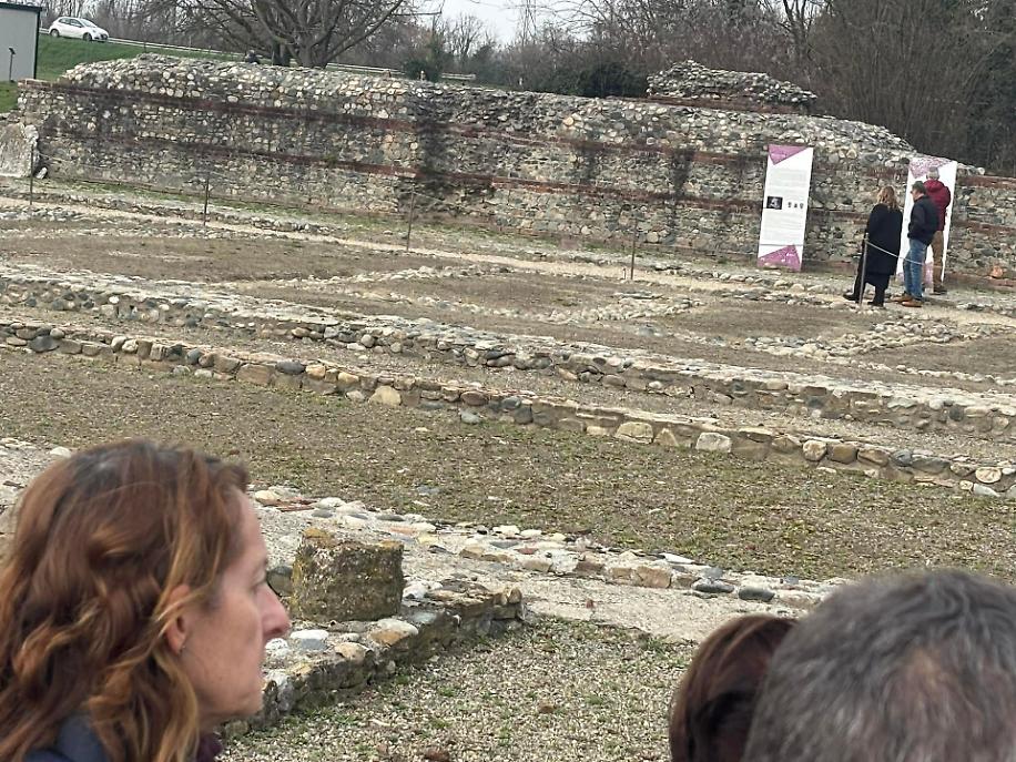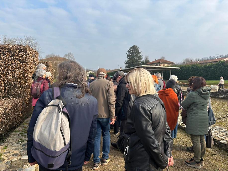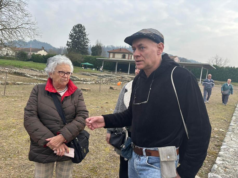 Il pomeriggio si è aperto alle 14.45 nell’area archeologica lungo Corso Industria, dove Sofia Uggè della Direzione regionale Musei nazionali Piemonte e Alessandro Quercia della Soprintendenza hanno guidato la visita ai nuovi scavi. Un momento dal peso simbolico evidente, soprattutto dopo l’alluvione del 2024 che ha colpito ancora una volta il sito, mettendone alla prova strutture e conservazione. Eppure Industria continua a riemergere, come ha fatto per secoli.