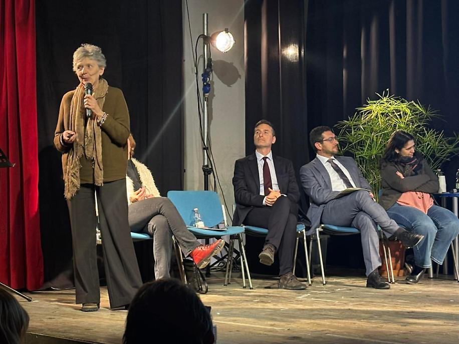 Alle 16 il confronto si è spostato al Teatro comunale, gremito oltre la capienza, con uno schermo allestito anche all’esterno per permettere a tutti di seguire gli interventi. La sindaca Maria Elisa Ghion ha aperto il convegno rivendicando il significato della giornata: «Oggi Monteu da Po ha ospitato un evento che, per una realtà piccola come la nostra, rappresenta un momento di grande rilievo. Tutto è partito dagli scavi archeologici della città romana di Industria, che sono il cuore della nostra storia e delle nostre origini, fino ad arrivare a un convegno nel nostro teatro comunale con un ospite d’eccezione: il professor Christian Greco, direttore del Museo Egizio di Torino, che ha tenuto una lectio magistralis spettacolare, grazie alla sua professionalità, competenza e straordinaria capacità comunicativa».