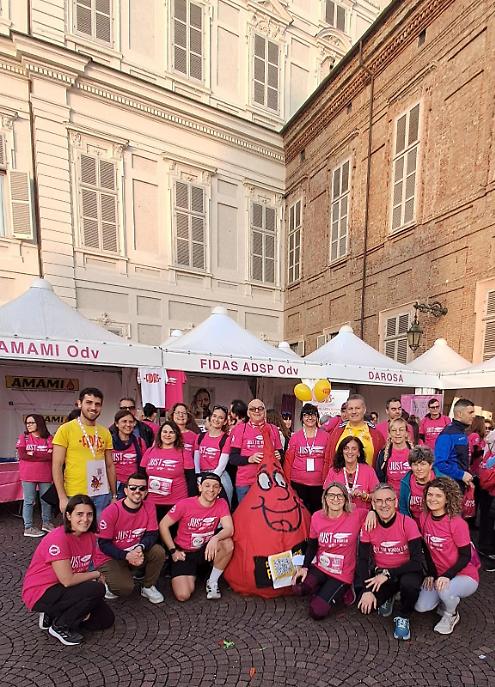 Il momento più atteso è arrivato domenica 8 marzo con la tradizionale corsa-camminata di cinque chilometri. La partenza dal Parco del Valentino e l’arrivo in piazza Castello hanno trasformato il centro di Torino in un fiume di persone, colori ed entusiasmo. Anche FIDAS ADSP ha preso parte alla corsa con un proprio team: 80 volontari e donatori hanno indossato con orgoglio i colori dell’associazione.