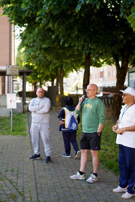 Il colpo d’occhio, tra le vie del quartiere e lungo i tratti del percorso, dice più di qualsiasi comunicato: file compatte di persone, gruppi organizzati, volontari con le pettorine, momenti di sosta e socialità. Un quartiere che si muove insieme, letteralmente.