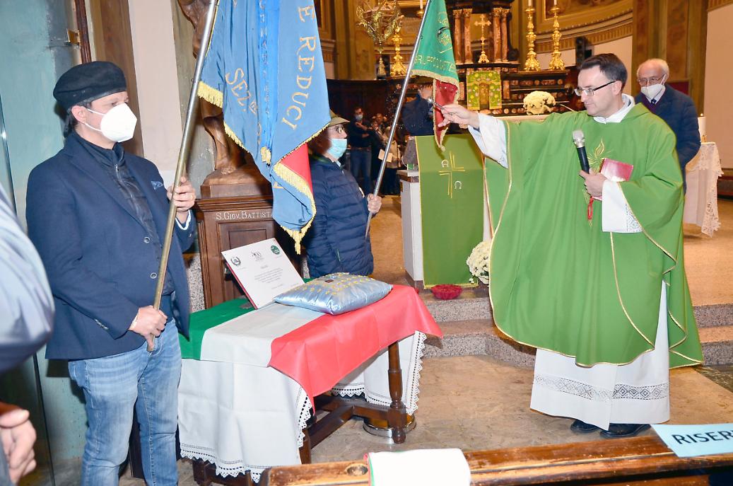 Al termine della Santa Messa delle 11, nella chiesa parrochiale di Castelrosso, domenica 31 ottobre, il parroco don Davide Smiderle ha benedetto la targa commemorativa dell’Associazione Nazionale Combattenti e Reduci e del gruppo Alpini castelrossese, per il Centenario della traslazione del Milite Ignoto all’Altare della Patria. Alla cerimonia erano presenti il presidente castelrossese dei Combattenti e Reduci, Pierangelo Ferrero, un gruppo di Alpini locali con il capogruppo Mario Volpatto, il Genio Pionieri, la Fanteria e il consigliere comunale Matteo Doria. La targa verrà posata il prossimo 7 novembre, durante la celebrazione del IV novembre, nel monumento dei Caduti Senza Croce presso l’ingresso del cimitero di Castelrosso.