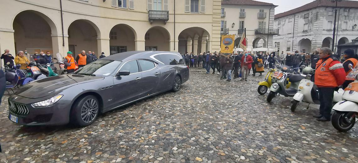 Anche nel giorno dell’ultimo saluto, le Vespe del Vespa Club Venaria Reale sono state accanto al loro tesoriere, Pippo La Torre, morto domenica 31 ottobre a 81 anni dopo un attacco cardiaco post operazione.