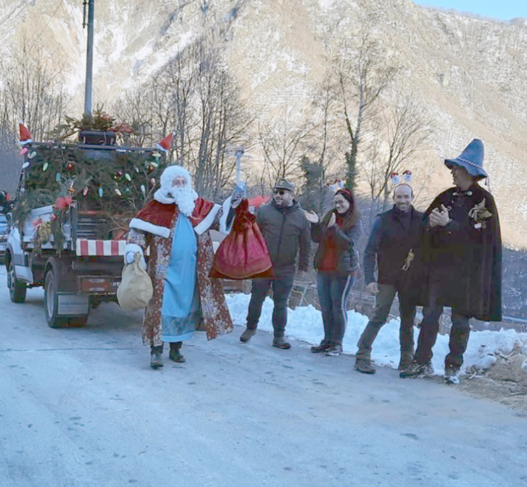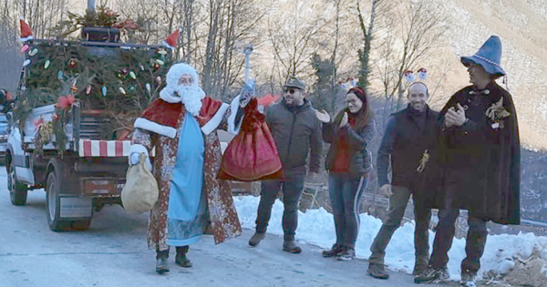 Domenica 12 dicembre invece eccolo sopraggiungere su un camioncino tutto addobbato dal quale è sceso con in mano i sacchetti dei doni e sulle spalle un originale mantello. Ad attenderlo c’era un gruppo di adulti e bambini: a questi ultimi ha distribuito dei pensierini.
