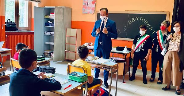 La scuola è un servizio che deve garantire efficienza non solo in una grande città, ma anche nei nostri piccoli comuni. Oltre a quello della ripartenza in sicurezza, grazie ai vaccini e al grande lavoro sui trasporti che abbiamo fatto, questo è il messaggio di quest’anno». Ieri mattina il presidente della Regione Piemonte, Alberto Cirio, ha visitato le Valli di Lanzo per l’inizio del nuovo anno scolastico. Ad accoglierlo nel “tour” valligiano a Viù, Ceres e Pessinetto i sindaci dei tre Comuni e numerosi altri amministratori delle Valli. A Viù Cirio ha preso parte all’inaugurazione della Scuola dell’infanzia Vincenzina Virando, poi ha visitato la scuola elementare e media Cibrario. Quindi si è recato a Ceres nell’istituto comprensivo Murialdo, poi a Pessinetto nella scuola elementare nel palazzo comunale.
