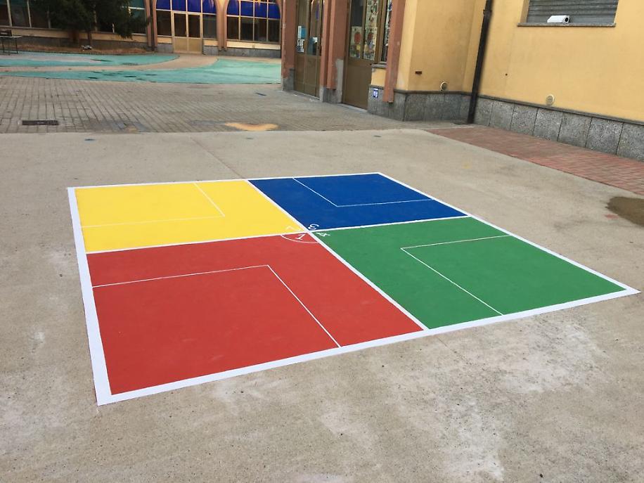 Un parco giochi che nasce dal gioco tradizionale di strada, che non prevede installazioni ingombranti ma colorate linee che si fondono con l'ambiente urbano creando nuovi spazi di gioco non invasivi.
