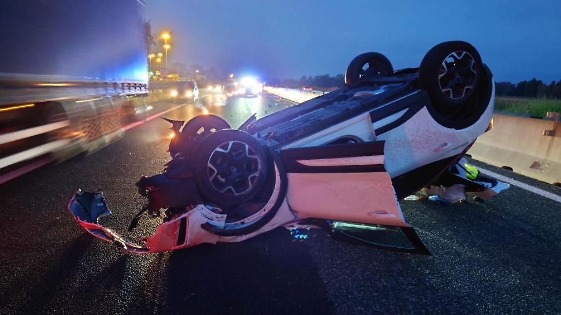 LEINÌ. Auto investe cinghiale e si ribalta, illeso l'automobilista (GALLERIA FOTOGRAFICA)