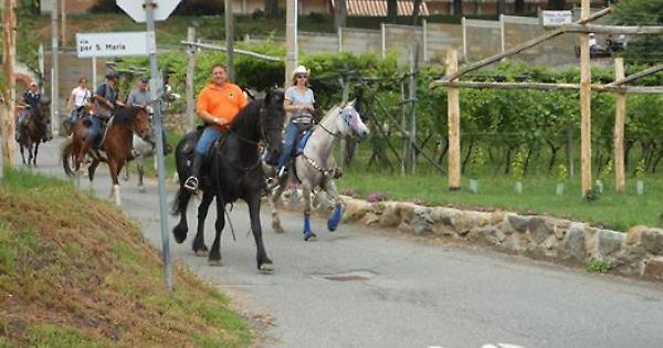 Domenica 15 giugno è tornata, sulle strade di Agliè, la passeggiata a cavallo organzizata da Roberto Monateri per le associazioni "Il Cavalcavalli" ed "I cavalieri del Pellice". Hanno partecipato ventuno persone, tra cavalieri ed amazzoni, oltre ad una carrozza trainata da due Tpr. La passeggiata, già organizzata l'anno scorso per l'associazione nazionale "Natura a cavallo", è partita il mattino dal piazzale al fondo della rampa del Castello Ducale. Il gruppo ha proseguito lungo le strade di campagna fino a Cuceglio per poi inoltrarsi nei boschi ed arrivare all'area naturalistica Pianezze di Vialfrè. Il percorso è continuato tornando in territorio alladiese, a Santa Maria della Rotonda, per il pranzo. Nel pomeriggio è arrivato alla Chiesa dei Tre Ciochè e quindi nel centro di Agliè dov'è stato accolto cordialmente dal sindaco Marco Succio e dalla Pro Loco. I volontari dell'Associazione hanno offerto ai graditi ospiti una degustazione di torcetti e vini locali. La passeggiata si è conclusa dov'è cominciata, nel parco del Castello.