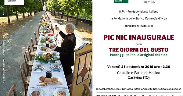 - Lo Storico Carnevale di Ivrea sarà presente alla Tre giorni del Gusto: Paesaggi Italiani e Artigiani del Cibo in scena da venerdì 25 a domenica 27 settembre al Castello e Parco di Masino. Protagonisti dell’apertura inaugurale riservata di venerdì 25 settembre, per la quale sarà gradito ospite (invito in allegato), saranno i cibi del nostro Carnevale, un’occasione unica per i partecipanti di degustare i deliziosi fagioli grassi cucinati dai cuochi delle Fagiolate rionali e lo sfizioso merluzzo con polenta preparato dai cuochi del Comitato della Croazia Polenta e Merluzzo, oltre alla Torta ufficiale dello Storico Carnevale di Ivrea del Maestro Pasticcere Mauro Morandin.