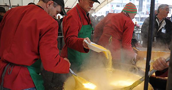 Ogni anno vengono cucinati 1.200 kg di polenta, 900 kg di merluzzo e 1.100 kg di cipolle.