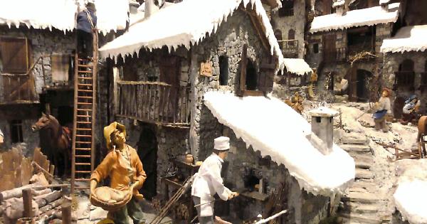“Sulla superficie del Presepe, che nella passata edizione venne notevolmente estesa con la realizzazione di una ampia scenografia di oltre 10 metri quadrati che ha completato e notevolmente allungato il lato sinistro del plastico, sono state quest’anno innestate nuove ambientazioni - spiega il Gruppo Presepe San Giuseppe -. Dalle alte vette innevate, i cui profili sono quelli delle vicine Valli di Lanzo, sgorga una cascata le cui acque vanno ad alimentare un laghetto alpino. Sulla sponda del laghetto completa il quadro un pescatore animato, intento a catturare pesci. Alle quote più basse delle montagne, dove si estendono erbosi alpeggi, si potrà ammirare una camminata di personaggi e pastori che conducono al pascolo greggi di pecore. In primo piano è stata riprodotta l’antica miniera Brunetta, ubicata nei pressi dell’Alpe Brunetta sopra la frazione Vru di Cantoira, nonché la principale cava attiva nel corso del ‘900”.