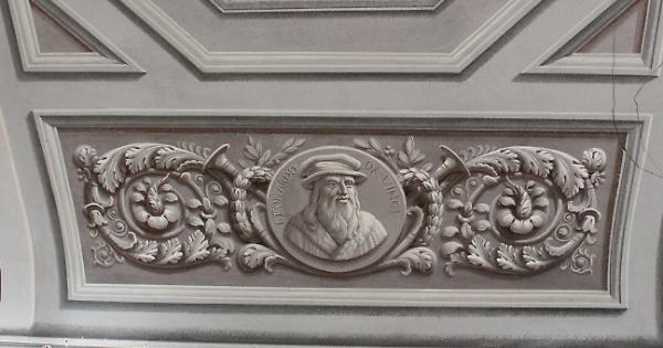 Nel salone ovale del Castello di Pralormo, ora camera da pranzo inserita nel percorso di visita, si può ammirare il soffitto affrescato con i ritratti di artisti illustri. Fra di essi spicca il ritratto di Leonardo da Vinci.