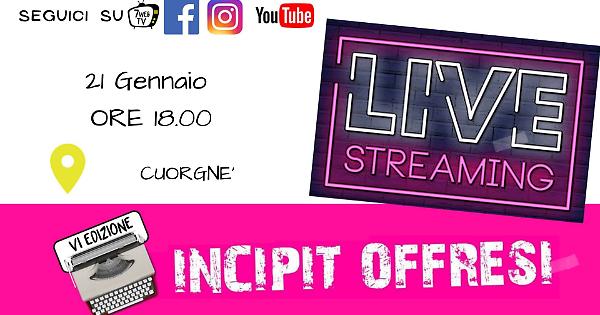 La Biblioteca Civica di Cuorgnè ospiterà, giovedì 21 gennaio 2021, la diretta streaming di Incipit Offresi, la sesta edizione del primo talent letterario itinerante dedicato agli aspiranti scrittori, ideato e promosso dalla Fondazione ECM - Biblioteca Civica Multimediale di Settimo Torinese, in sinergia con Regione Piemonte. Incipit Offresi è un format a tappe: la sfida si giocherà a colpi di incipit, da ottobre 2020 a giugno 2021, all’interno delle biblioteche del Piemonte, con qualche tappa “extraterritoriale” in Lombardia, nel Lazio e in Liguria. L’obiettivo non è quello di premiare il romanzo inedito migliore, ma quello di scovare nuovi talenti. Gli aspiranti scrittori, in collegamento da tutta Italia, avranno 60 secondi di tempo per leggere o raccontare il proprio incipit. Allo scadere della prova, la giuria tecnica esprimerà un voto che andrà a sommarsi ai voti assegnati dalla Scuola del Libro di Roma e dalla casa editrice Emons, per decretare il vincitore o la vincitrice della tappa. Una volta designato il vincitore, si aprirà il voto del pubblico che, da casa, attraverso la piattaforma di voto predisposta dal Comitato Organizzatore, potrà esprimere entro le ore 21 della giornata di gara la propria preferenza per un altro concorrente. Chi otterrà più voti potrà partecipare alla gara di ballottaggio. Ogni appuntamento, trasmesso in diretta streaming, sarà animato dagli attori di B-Teatro con le incursioni musicali di Mattia Martino, ed interattivo. Il pubblico, infatti, potrà partecipare attivamente alla gara, partecipare ai giochi in programma e vincere i premi in palio: libri ed oggetti realizzati a mano da “Unico e Irripetibile”, laboratorio artistico del Progetto Ponte, servizio dell’Unione N.E.T. per persone con disabilità gestite dalla cooperativa Il Margine. Incipit Offresi è un’occasione innovativa per diventare scrittori e promuovere la lettura e la scrittura, una scommessa basata su poche righe, un investimento sulle potenzialità dell’autore. La vera chance dell’iniziativa è la possibilità offerta agli aspiranti scrittori di incontrare e dialogare direttamente con gli editori coinvolti nelle varie fasi del progetto, farsi conoscere e raccontare la propria idea. Incipit Offresi è un vero e proprio talent della scrittura, lo spazio dove tutti gli aspiranti scrittori possono presentare la propria idea di libro. Fino ad oggi sono stati decretati 5 vincitori, uno per ogni edizione, e sono stati pubblicati più di 45 libri dagli editori aderenti all'iniziativa, a dimostrazione che gli scrittori hanno speranza di vedere pubblicato il proprio libro indipendentemente dall'esito della gara. La partecipazione a Incipit Offresi è gratuita e aperta agli scrittori, esordienti e non, di tutte le nazionalità ed età (a partire dai 15 anni, previa autorizzazione del genitore o tutore). I candidati dovranno presentare le prime righe della propria opera: l’incipit, appunto, un massimo di 1.000 battute con le quali catturare l’attenzione dei lettori e una descrizione dei contenuti dell’opera. I primi classificati di ogni tappa e gli eventuali ripescaggi potranno accedere alle semifinali per giocarsi la possibilità di approdare alla finale, che si terrà a Torino nell'estate 2021. Le ultime due finali sono state presentate da Neri Marcoré e Boosta dei Subsonica. I concorrenti primo e secondo classificato riceveranno rispettivamente un premio in denaro di 1.000 e 500 euro; saranno inoltre messi in palio fra tutti i partecipanti alla finale il Premio Calvino, il Premio Indice dei Libri del Mese ed eventuali altri premi assegnati dagli editori. Incipit Offresi è un’iniziativa ideata e promossa dalla Fondazione ECM – Biblioteca Archimede di Settimo Torinese e Regione Piemonte, con la collaborazione della Scuola del Libro di Roma e con la sponsorizzazione di NovaCoop. Il Premio Incipit e il campionato sono dedicati a Eugenio Pintore, per la passione e la professionalità con cui ha fatto nascere e curato Incipit Offresi.