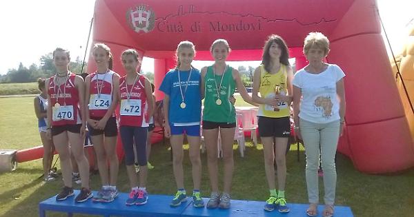 Martina Fissore, dell'Atletica Settimese, al centro con la medaglia di bronzo
