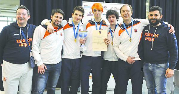 Un venerdì esaltante per il Circolo Scherma Giuseppe Delfino Ivrea, capace di trionfare nel Campionato Italiano di serie B1 di spada maschile, conquistando per il secondo anno consecutivo la promozione alla serie superiore: dalla B2 alla B1 nella stagione 2015/2016 e dalla B1 alla A2 nell’annata in corso. Dopo nove anni di purgatorio tra B1 e B2, il Circolo Delfino fa così il suo ritorno in serie A2, per la gioia dello staff eporediese e di tutti gli appassionati. Riccardo Abate, Andrea Bermond, Eugenio Chasseur e Eugenio Tradardi sono consapevoli dell’importanza di questo appuntamento agonistico e sono determinati a contendersi uno dei quattro posti disponibili per approdare alla serie superiore. La squadra del Circolo Scherma Giuseppe Delfino viene inserita nel girone 1 con C.S. Legnano, C.S. Foligno e Lame Azzurre Brindisi e nel primo incontro batte gli umbri per 41-38. E’ poi la volta del confronto con il team pugliese, superato con il punteggio di 43-32, e dell’ultima sfida del girone di qualificazione con i lombardi, sconfitti 45-25. Il tris di vittorie consente agli eporediesi di assicurarsi la seconda testa di serie del tabellone delle dirette, che vede Bermond e compagni partire dagli ottavi di finale, nei quali hanno la meglio sulla Pettorelli Piacenza per 45-36. E’ il momento dei quarti, turno che in caso di vittoria garantisce la prestigiosa promozione in A2. Opposti agli eporediesi in pedana ci sono gli spadisti della Pro Patria Busto Arsizio, che si confermano ossi duri da superare. Un incontro difficile, in cui Ivrea si trova costretta ad inseguire nel punteggio, ma nell’ottavo e penultimo assalto Tradardi riesce a completare la rimonta, fissando lo score sul 24-24. Abate ha il compito di chiudere l’incontro, disputato in un solo minuto e non nei tradizionali tre conseguentemente alla “passività” chiamata da bordo pedana. La priorità, che determinata la vittoria in caso di parità al termine del minuto dell’assalto, viene sorteggiata in favore dei lombardi, quindi l’eporediese per imporsi deve mettere almeno uno stoccata in più del suo avversario diretto. Un compito non facile, ma portato a termine alla grande da Riccardo che fissa lo score sul 31-27 finale, punteggio che vale la serie A2! Sulle ali dell’entusiasmo per l’importante traguardo raggiunto, la squadra del Circolo Delfino in semifinale si sbarazza della Michelin Collegno per 45-29 e nella finalissima tricolore non si concedono pause contro il Circolo Schermistico Forlivese, grazie soprattutto ad un bravissimo Chasseur che vince in modo netto i suoi tre assalti, chiudendo così la giornata sul gradino più alto del podio. Una bella e meritata vittoria per il Circolo Scherma Giuseppe Delfino Ivrea presieduto dall’ex olimpionico Bermond, che in questa gara ha apportato il suo prezioso contributo nei momenti in cui la squadra sembrava tentennare Grande la soddisfazione per i due maestri del sodalizio eporediese Francesco Campagna e Marco Secco, sempre attenti e prodighi a dare consigli, mantenendo la calma durante tutta la lunga giornata. Oltre che agli atleti, una menzione speciale va spesa proprio per i maestri, che stanno svolgendo in sala un ottimo lavoro.