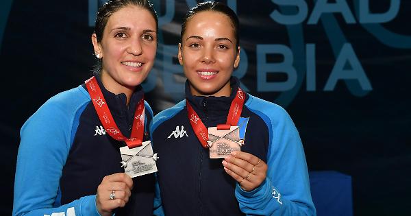 Arrivano altre due medaglie per l'Italia dai Campionati Europei di scherma, in corso a Novi Sad. Il fioretto femminile azzurro porta in dote infatti la medaglia d'argento con Arianna Errigo e quella di bronzo con Alice Volpi. Sale quindi quota quattro il bottino italiano dopo due giornate: le medaglie del fioretto femminile infatti si aggiungono si aggiungono alle altre due conquistate nel fioretto maschile da Daniele Garozzo e Giorgio Avola, rispettivamente argento e bronzo. Arianna Errigo conquista la medaglia d'argento al termine della finale contro l'olimpionica di Rio2016 e campionessa del Mondo in carica, la russa Inna Deriglazova, che sale sulla vetta del podio grazie al punteggio di 15-9. La russa si è cosi "vendicata" della sconfitta subìta lo scorso anno sulle pedane continentali di Tbilisi ed interrompe la striscia di successi europei azzurri iniziata nel 2013 col dominio prima di Elisa Di Francisca e poi di Arianna Errigo. Alice Volpi, invece, si conferma sul terzo gradino del podio europeo, così come dodici mesi fa in Georgia. A "dirottare" la fiorettista senese verso la medaglia di bronzo è stata proprio Arianna Errigo che, nel derby di semifinale, si è imposta per 15-9. Le due azzurre si ritrovano così sul podio europeo al termine di una giornata che le aveva visto assolute protagoniste del tabellone. Arianna Errigo, dopo la fase a gironi in cui ha vinto tutti gli assalti, ha superato in sequenza dapprima la tedesca Hampel per 15-3, quindi la russa Zagidullina col netto punteggio di 15-4 e poi ai quarti la tedesca Anne Sauer per 15-11. Alice Volpi, invece, aveva subìto due sconfitte nella fase a gironi che l'avevano costretta ad iniziare sin dal tabellone delle 64 la sua gara ad eliminazione diretta. L'azzurra non si è persa d'animo ed ha avuto ragione della britannica Fihosy per 15-5, poi della francese Anita Blaze per 15-9 e, nel turno delle 16, della polacca Walczyk per 15-10. Nel turno dei quarti di finale ha poi avuto nettamente la meglio, per 15-4, sull'ungherese Fanny Kreiss. Si è fermata agli ottavi invece Chiara Cini. La toscana, al suo esordio continentale, è uscita sconfitta 15-5 dal match contro la russa Martyanova. Stop nel turno delle 32 invece per Camilla Mancini, "condannata" dalla stoccata del 15-14 subìta contro l'ucraina Senyuta. Nella gara di spada maschile, è stato Gabriele Cimini il migliore degli azzurri. Il pisano, al suo esordio in una competizione continentale, si ferma ai piedi del podio perché sconfitto 15-6 dal francese e campione europeo uscente, Yannick Borel. L'azzurro, dopo aver vinto tutti i match del proprio girone, aveva sconfitto lo svizzero Bayard per 15-10, poi l'azero Aliyev e quindi il britannico Nichols col punteggio di 15-9. Sono stati eliminati invece agli ottavi sia Andrea Santarelli che Marco Fichera. Il primo, dopo aver sconfitto in sequenza il danese Von der Osten per 15-8 e poi il ceco Jurka, ha subìto la stoccata del 15-14 dal francese Borel che ha cosi interrotto la rimonta dell'azzurro capace di agguntare il punteggio dopo essere stato in svantaggio anche per 7-1. Marco Fichera, invece, ha dapprima sconfitto 15-5 l'israeliano Freilich, poi ha avuto la meglio sull'ucraino Reizlin per 15-7, prima di essere sconfitto al minuto supplementare col punteggio di 3-2 dall'altro ucraino Bogdan Nikishin. Era uscito di scena nel turno dei 64 Enrico Garozzo. L'azzurro, dopo la fase a gironi, è stato superato dal ceco Jakob Jurka per 15-14.