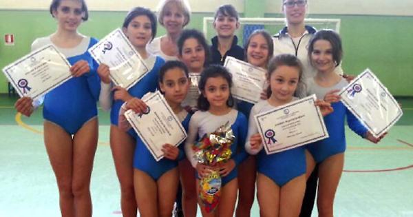 Le ginnaste della sezione di Saluggia con lo staff chivassese