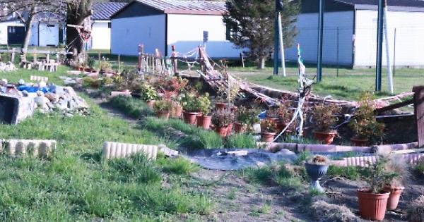 In foto, il lato dell’area dove la staccionata in legno è stata buttata giù andando a ripiegare sui vasi