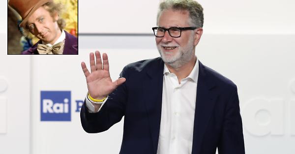 Fabio Fazio e, nel riquadro, Willy Wonka