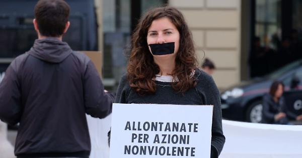 Durante il presidio di questo pomeriggio, alcuni attivisti con la bocca chiusa da un pezzo di scotch nero, si sono posizionati al centro della piazza con un cartello sulla schiena riportante il nome di una delle persone colpite dalle denunce e/o dai fogli di via, delle quali sono stati letti discorsi e testimonianze. “Questa manifestazione a bocca chiusa” – spiega Aurelia, attivista di Extinction Rebellion – “vuole denunciare come le stesse istituzioni che dovrebbero proteggerci davanti al collasso eco-climatico imminente, scelgono invece di ignorare e punire chi cerca di amplificare la voce della scienza per accelerare il cambiamento di cui abbiamo bisogno”.