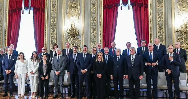 MATTEO PIANTEDOSI MINISTRO INTERNO, MARIA ELISABETTA ALBERTI CASELLATI MINISTRA RIFORME, ALESSANDRA LOCATELLI MINISTRA PER LE DISABILITA', EUGENIA ROCCELLA MINISTRA PER LA FAMIGLIA NATALITA' E PARI OPPORTUNITA', GENNARO SANGIULIANO MINISTRO CULTURA, ANNA MARIA BERNINI MINISTRA UNIVERSITA' E RICERCA, GIUSEPPE VALDITARA MINISTRO ISTRUZIONE E MERITO, ANDREA ABODI MINISTRO SPORT E GIOVANI, RAFFAELE FITTO MINISTRO AFFARI EUROPEI POLITICHE DI COESIONE E PNRR, MATTEO SALVINI MINISTRO INFRASTRUTTURE E MOBILITA' SOSTENIBILI, SEBASTIANO MUSUMECI MINISTRO POLITICHE DEL MARE E SUD, GIORGIA MELONI PRESIDENTE DEL CONSIGLIO, GILBERTO PICHETTO FRATIN MINISTRO AMBIENTE E SICUREZZA ENERGETICA, ROBERTO CALDEROLI MINISTRO AFFARI REGIONALI E AUTONOMIE, FRANCESCO LOLLOBRIGIDA MINISTRO AGRICOLTURA E SOVRANITA' ALIMENTARE, SERGIO MATTARELLA, ADOLFO URSO MINISTRO IMPRESE E MADE IN ITALY, ANTONIO TAJANI MINISTRO DEGLI ESTERI,GIANCARLO GIORGETTI MINISTRO DELL'ECONOMIA, PAOLO ZANGRILLO MINISTRO PUBBLICA AMMINISTRAZIONE, GUIDO CROSETTO MINISTRO DELLA GIUSTIZIA, LUCA CIRIANI MINISTRO RAPPORTI CON IL PARLAMENTO, CARLO NORDIO MINISTRO GIUSTIZIA