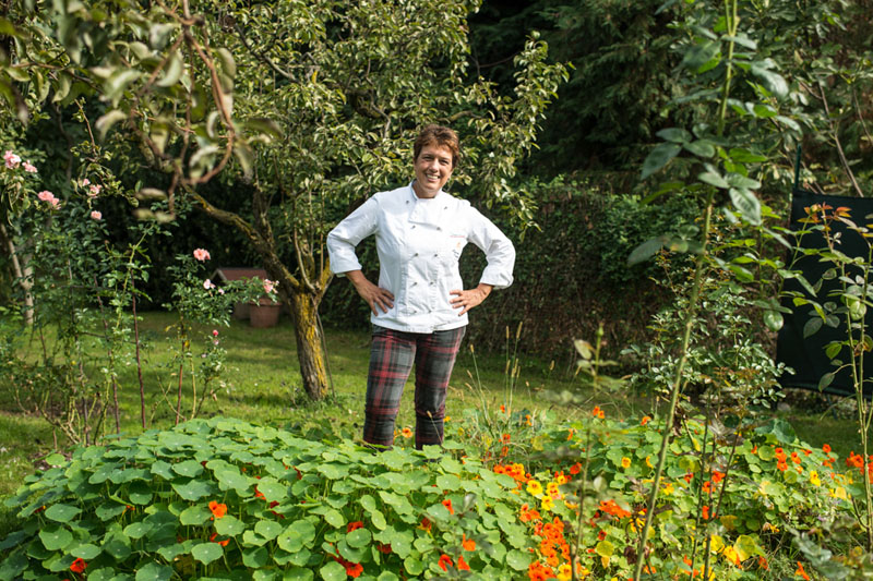 “La mia terra si trasforma nel piatto, il gusto delle erbe, il colore dei fiori. Semplicità diventa eleganza nella mia cucina”.